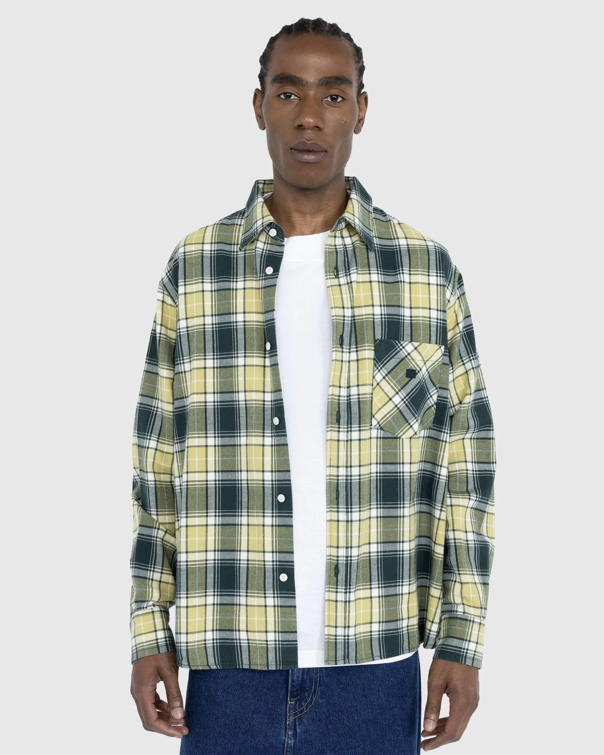 The Check Button-Up is a unisex Acne Studios style that is cut for a relaxed fit. Made from organically grown cotton, the garment boasts an all-over check pattern, with a small face logo patch incorporated onto the chest pocket and complementary face logo embroidery on the back of the silhouette. Additional details include a pointed collar, front button closure, and button cuffs.