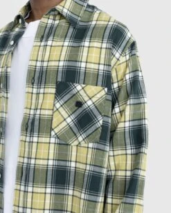 Shell is 100% organic cotton. All-over check pattern. Pointed collar. Front button closure. Button cuffs. Micro face logo patch at the left chest pocket. face logo embroidery at the back. Unisex.