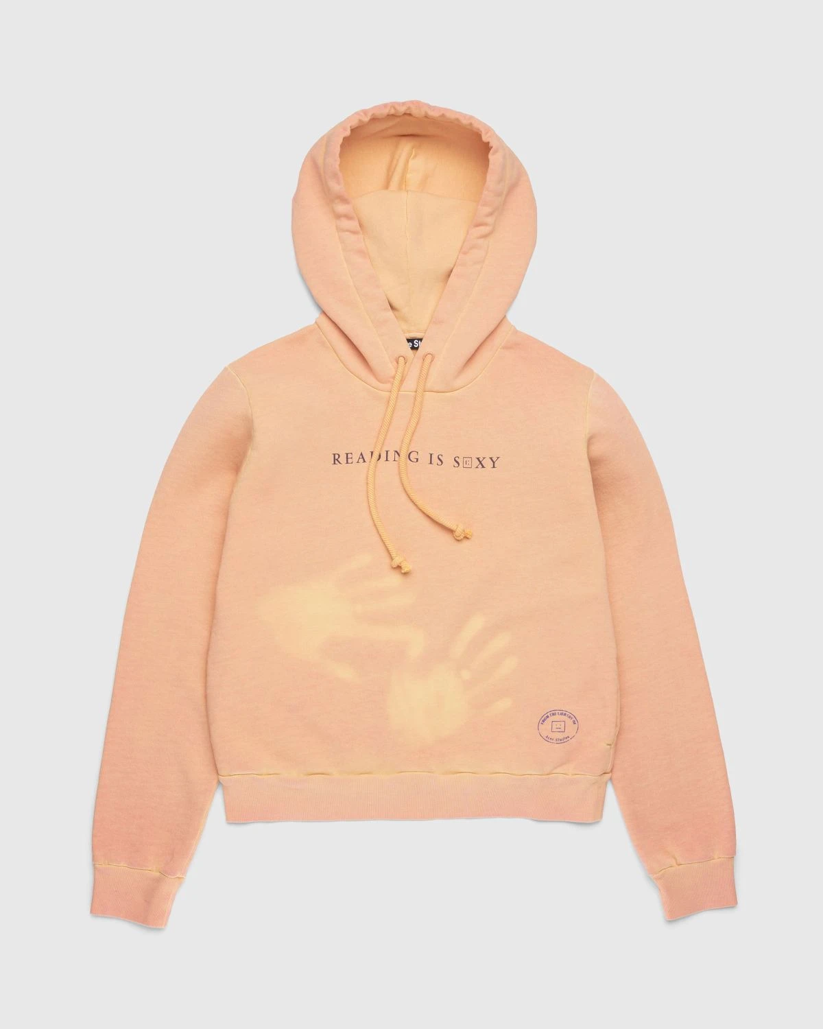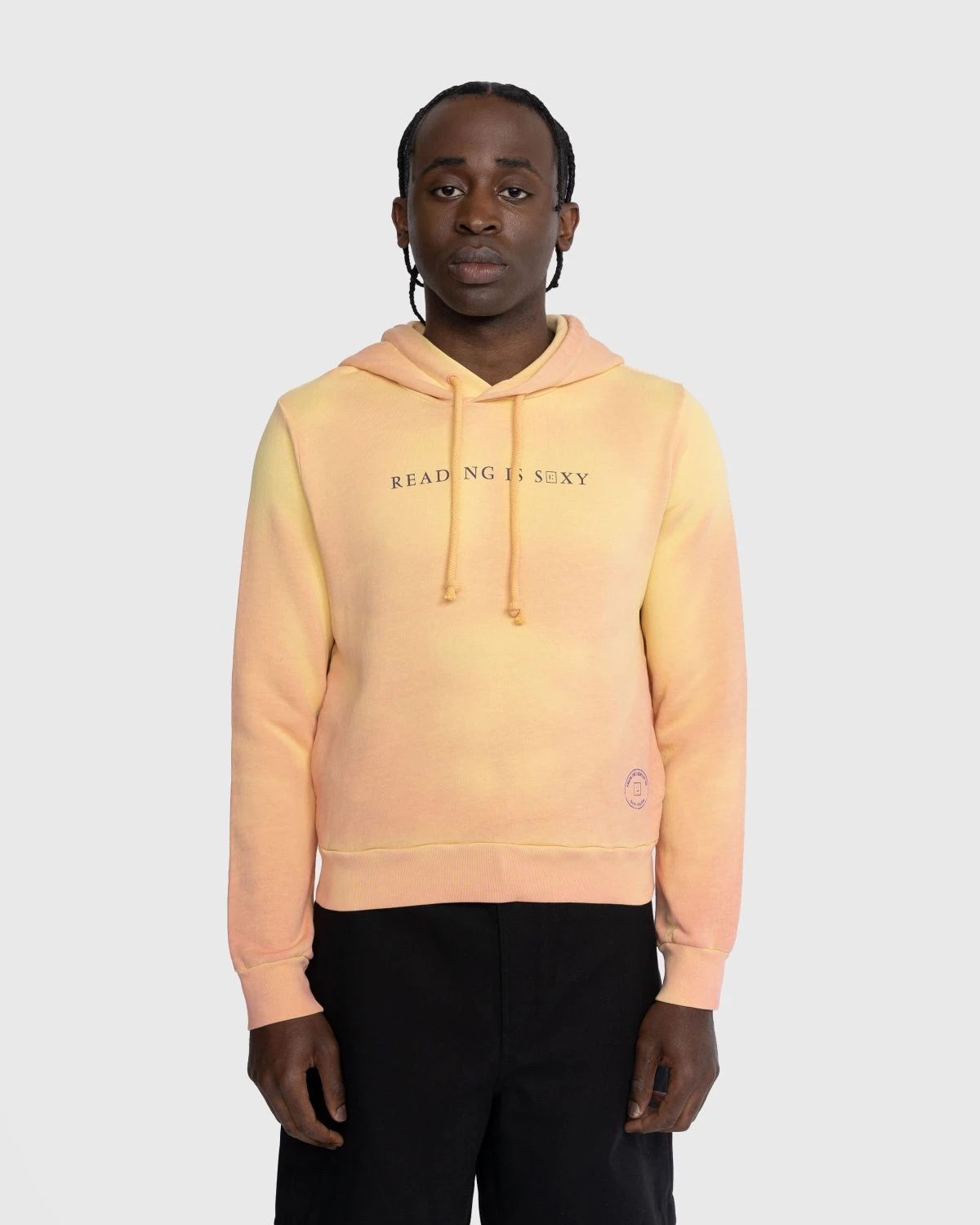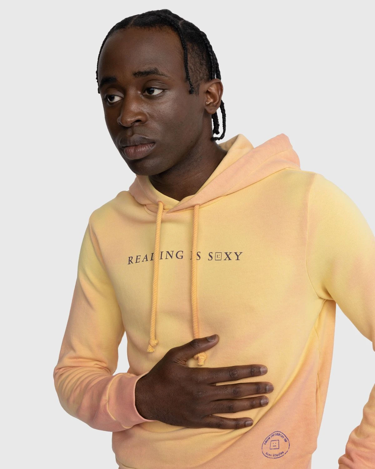 Heat reactive styles like this Acne Studios hoodie allow you to subtly alter the look of the garment. Constructed from a heat reactive fabric made of cotton with a midweight fleece finish, the pullover is further embellished with a small screenprint on the front that reads βReading Is Sexy.β More traditional design elements include a hood with an adjustable drawstring and ribbed trims at the cuffs and hem. Hand pockets are incorporated onto the front to complete the design.