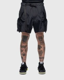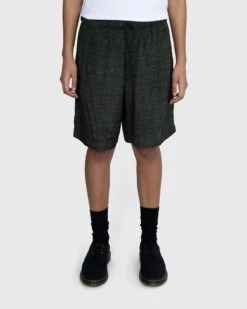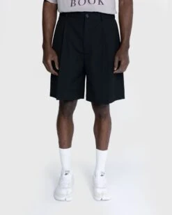 This unisex style is crafted from rigid indigo denim made of cotton, featuring a loose fit with a dropped crotch and below-the-knee length. Additional details include standard five-pocket styling, a button fly, and belt loops lining the waist.