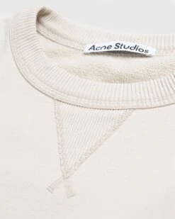 Shell is 100% organic cotton. Heavyweight fleece. Fade out finish. V insert. Ribbed crew neck and cuffs. Acne Studios logo stamp at the chest.