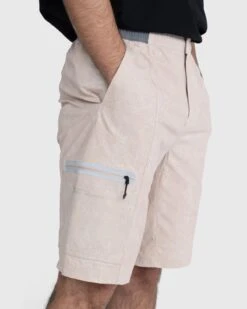 90% recycled nylon. 10% elastane. Nature-inspired print. Elasticated waist with drawcord. Button closure. Side hand pockets. Zip pocket at the right leg. Reflective co-branded detail at the left leg.