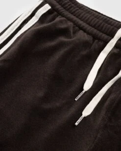 76% cotton. 22% polyester. 2% elastane. Extra soft chenille effect fabric. Elastic waistband. Side zip pockets. Three Stripes detail. Trefoil logo at the left leg. Wales Bonner logo at the back.