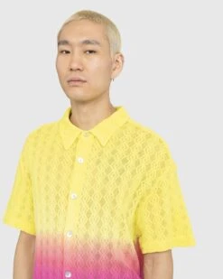 The perfect laid-back summer top, the Gentle Happiness Shirt stands out with its eye-catching design and sheer cotton lace construction. It is ombre-dyed to create a vibrant look that instantly injects color into your warm weather wardrobe.