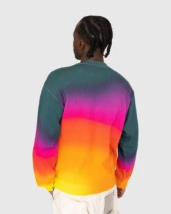 AGRβs expertise in colorful gradients makes for an eye-catching finish on the brandβs Wellness Crew. Arriving with a multicolored look, the comfy top is produced in a midweight non-stretch cotton fabric and cut for a relaxed fit. It is detailed with ribbed trims at the crew neck, cuffs, and hem.