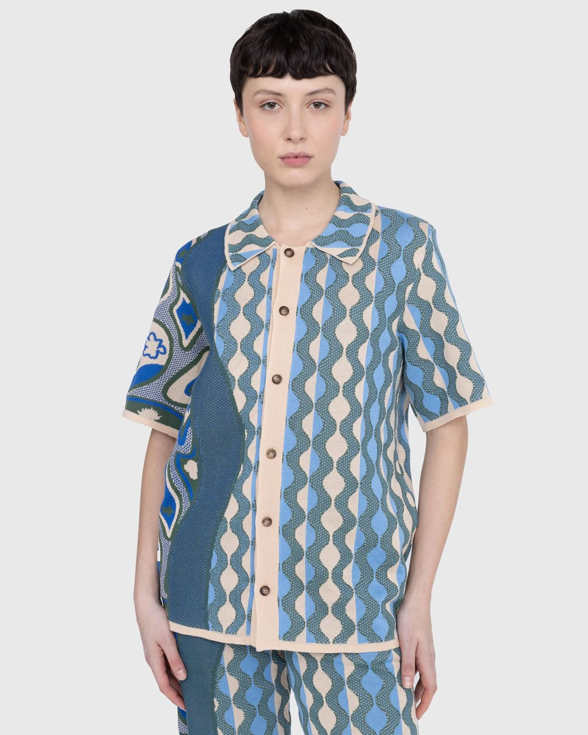 The Katrina Knit Shirt incorporates seasonal Ahluwalia designs inspired by the designerβs Indian-Nigerian heritage. Crafted from 100% cotton, the jacquard knit shirt features contrasting wavy lines that are juxtaposed with a large patchwork-like stripe that leads to another inviting pattern, guaranteeing youβll stand out wherever youβre at.