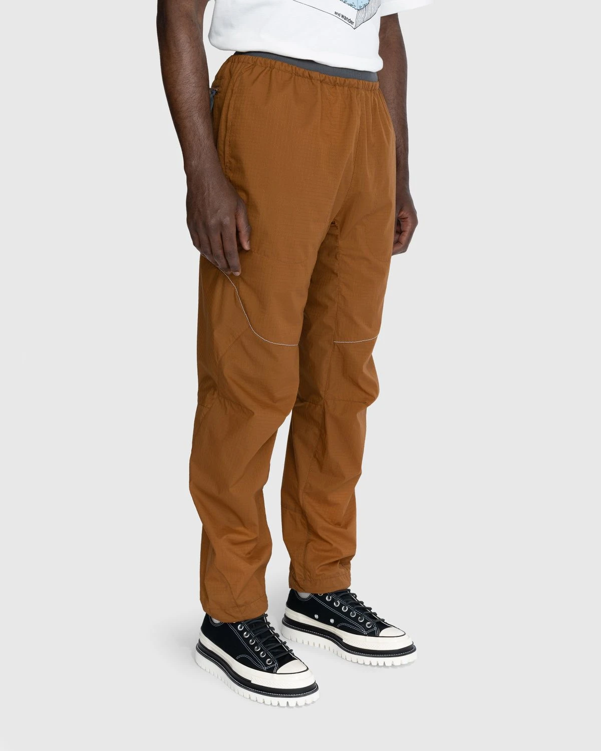 and wanderβs Breath Rip Light Pants are crafted from 30 denier and 60 denier textured ripstop that is highly breathable and durable, as well as water-repellent. Cut in a standard fit, the pair features a pattern design with a wide range of motion and partial reflector stitch that improves nighttime visibility. An elasticated drawstring waistband allows you to dial in the fit, while an adjustable drawcord hem makes way for minor alterations to styling.