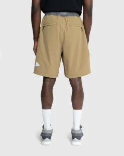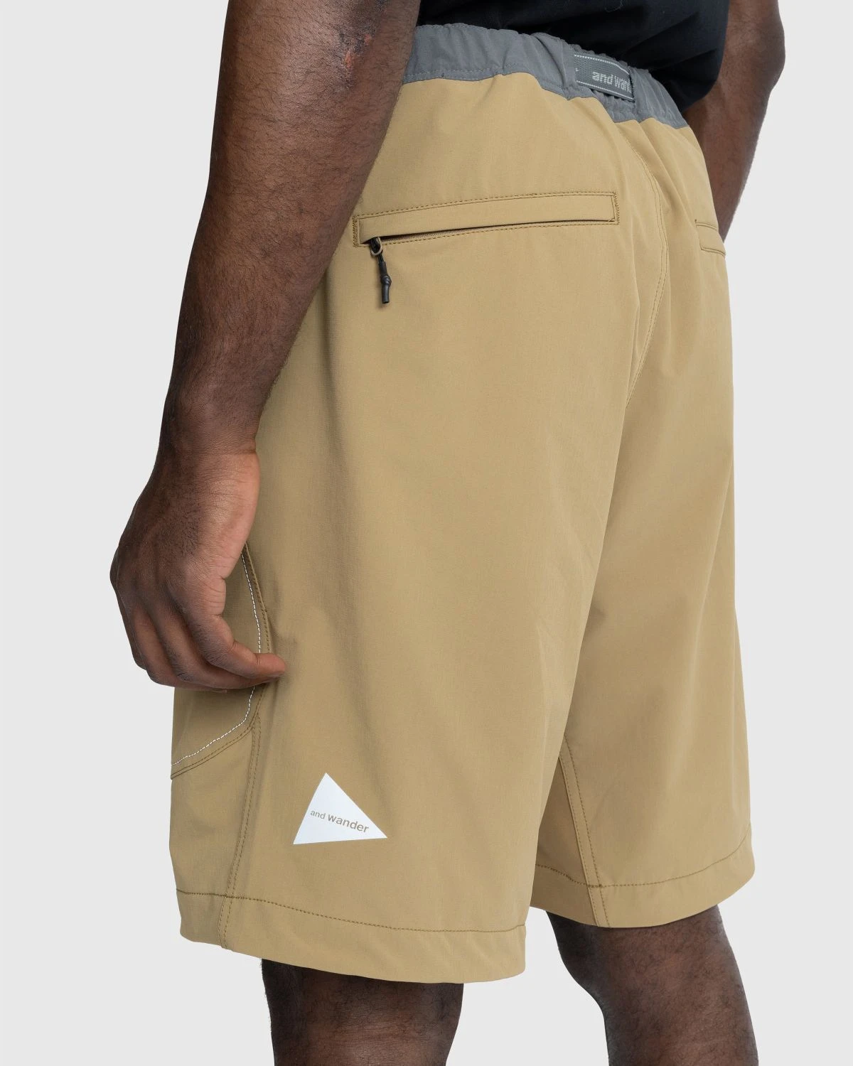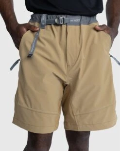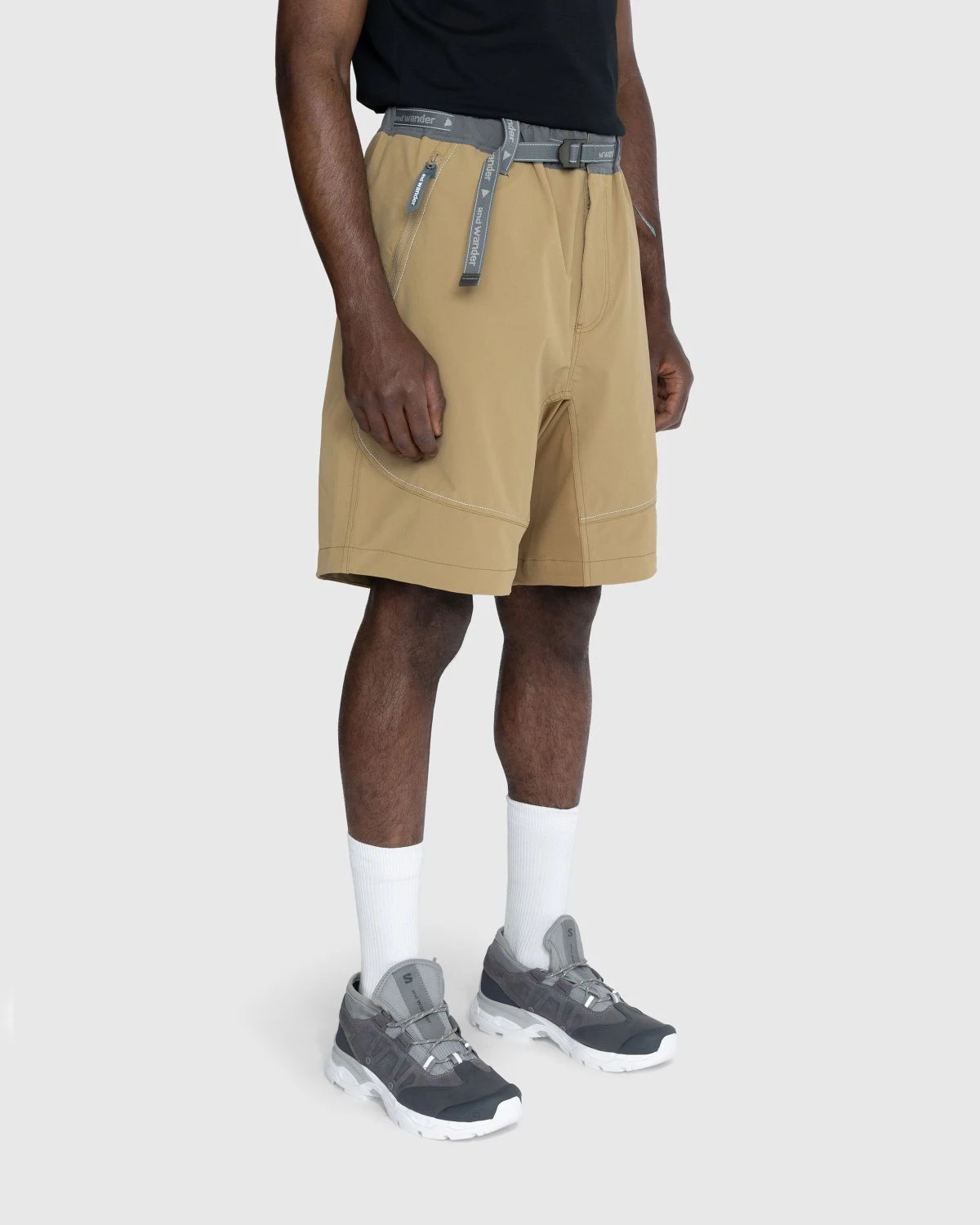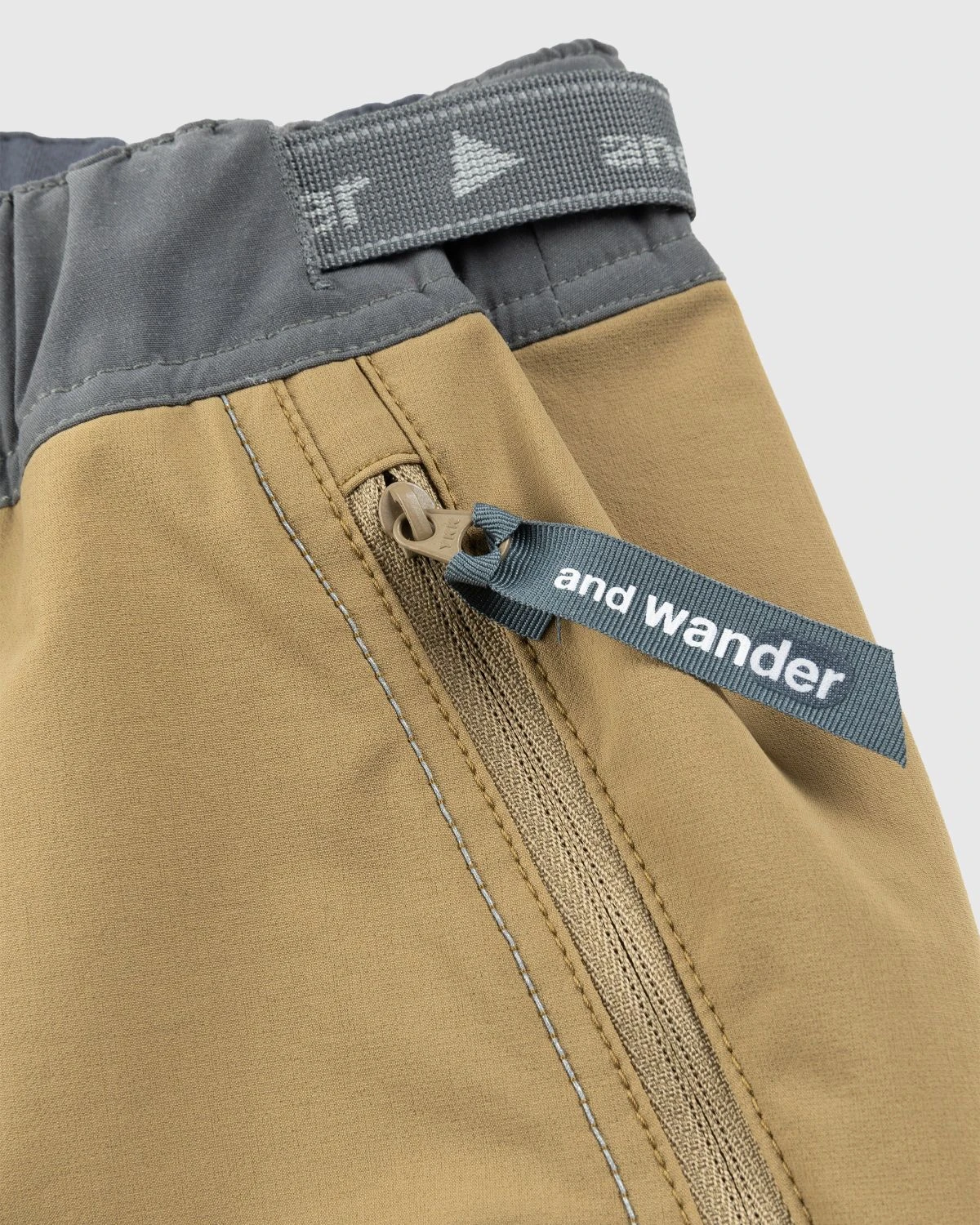 Expertly crafted from a water-repellent double weave stretch fabric, the Trek Shorts from and wander are perfect for urban exploration and mountain adventures alike. The hard-wearing pair makes use of a jersey material for the inseam gusset to prevent stiffness and stuffiness, and is outfitted with an integrated belt with branded metal hardware. Reflector prints and stitches ensure nighttime visibility, while zippered pockets at the front and back provide you ample space to securely carry essentials.