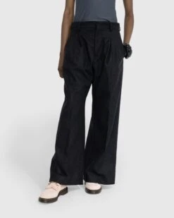 These Auralee slacks are produced in a tropical weight wool made of ultra-fine fiber-combed fabric, with a wrinkle-resistant, washable finish and natural stretch for a lightweight fit. The pair features a single pleat front, concealed closure, and belt loops at the waist, in addition to side slip pockets and rear welt pockets. Light padding is applied to the interior to enhance overall comfortability.