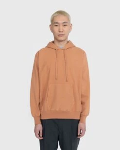 The Auralee Pullover Hoodie is knit using high-quality super-long cotton and bulky shrunken yarn, garment-dyed to give it a distinctive finish. It is cut in a regular, boxy fit, featuring traditional design elements including an adjustable drawstring hood, front pouch pocket, and ribbed trims. Available in a selection of monochromatic colorways, the hoodie is designed for long-lasting, year-round wear.