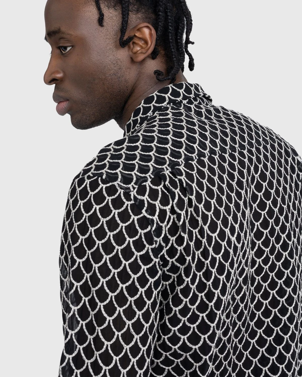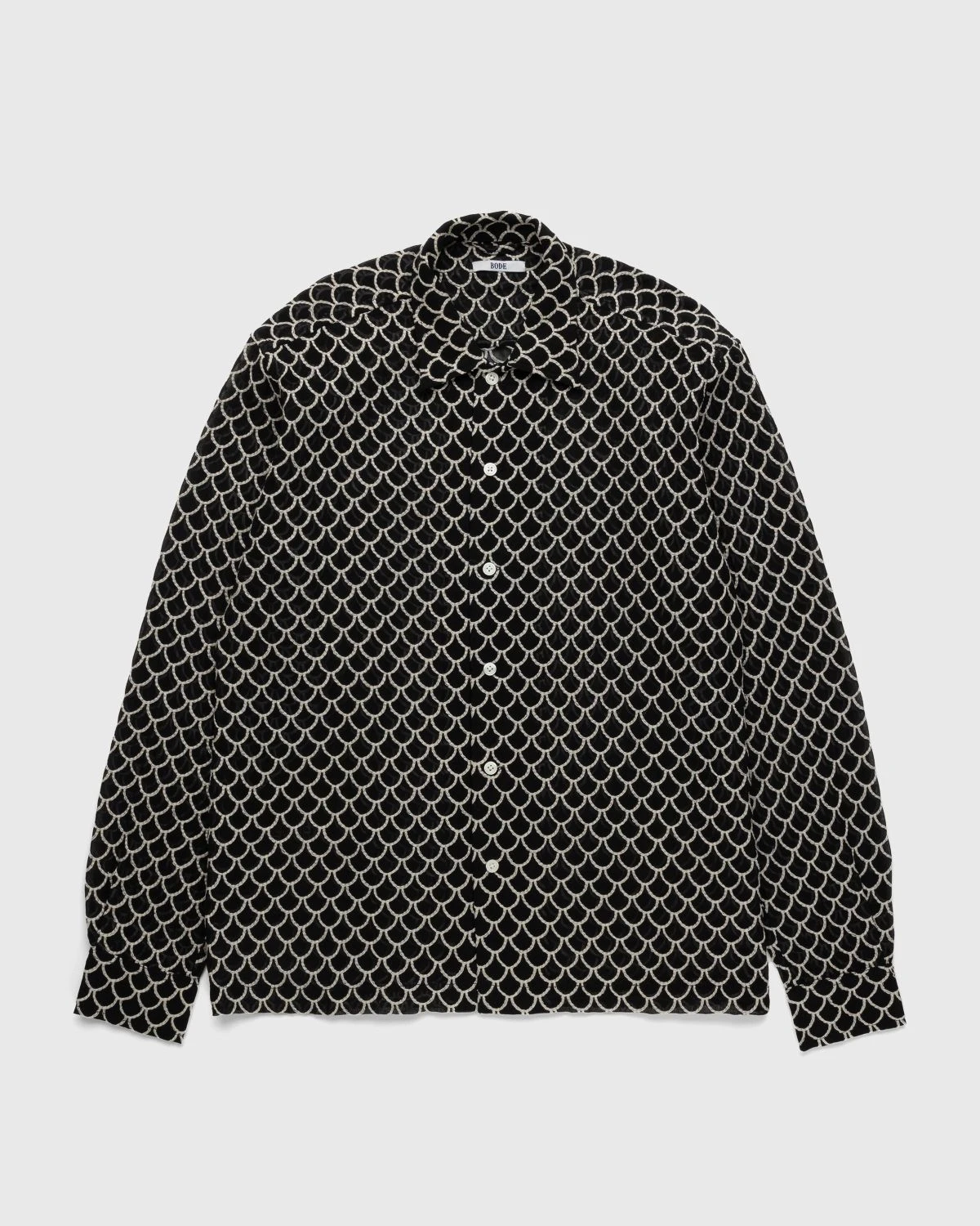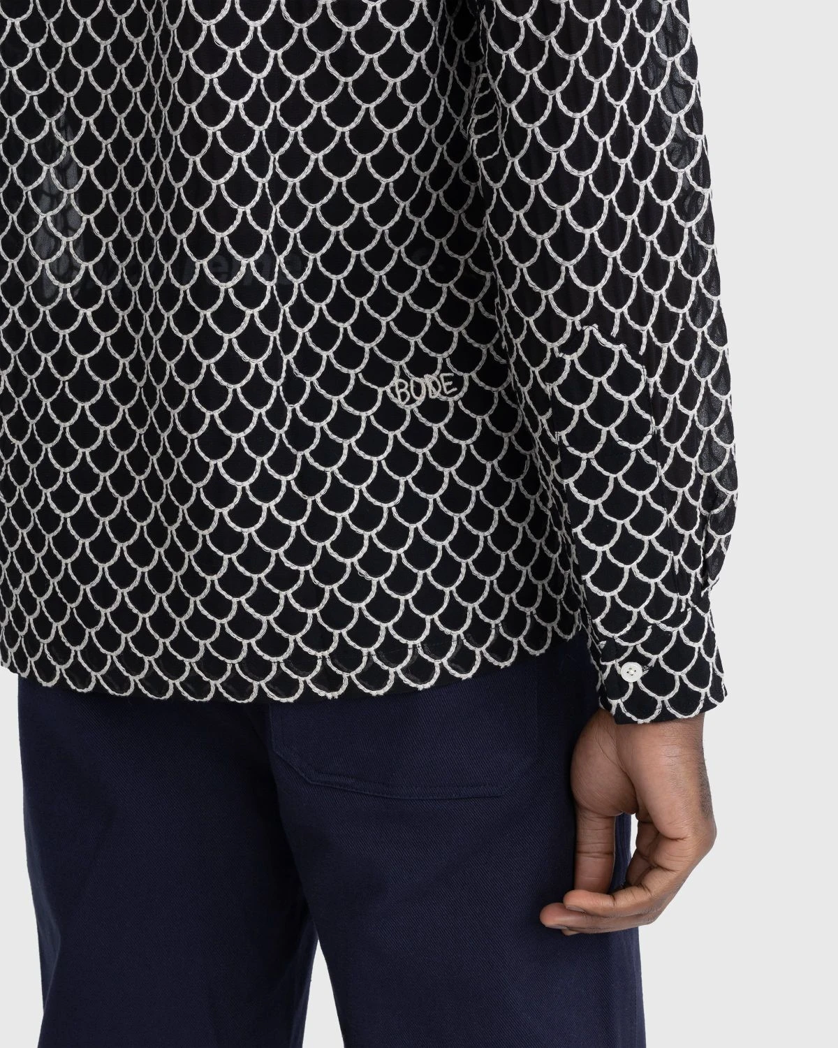 Bodeβs Sheer Siren Long-Sleeve draws inspiration from 1940s to 1960s deadstock Japanese embroidered fabric. An all-over pattern draws immediate attention to the boxy style, which is constructed from polyester, with details including a spread collar, button closure, button cuffs, and a straight hem.