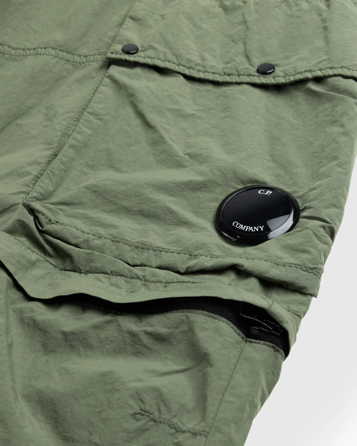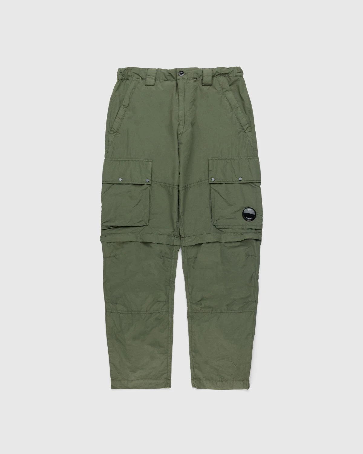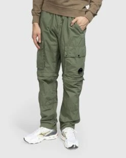 Two styles in one, these C.P. Company bottoms feature zips at the knee that allow you to go from pants to shorts in a flash. The pair is produced in flatt nylon, a water-resistant woven fabric emerized for a soft finish and garment-dyed to create a faintly washed effect. Details include reinforced belt loops, multiple pockets including zip hand pockets, two front leg pockets, and a back zip pocket, and the brandβs trademark lens incorporated onto the left leg.