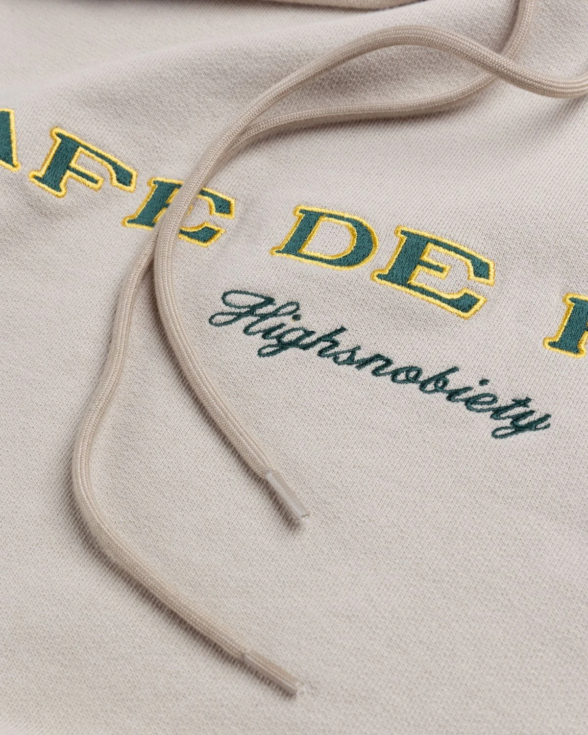 This graphic style is made in celebration of one of Paris’ oldest and most beloved coffee houses. The Café de Flore x Highsnobiety hoodie is decorated with embroidery inspired by the typographic branding on the exterior awning of the Cafe. A Parisian landmark, Café de Flore is known for its famous clientele and close ties to the fashion industry, as each Paris Fashion Week attendees flock to the establishment like clockwork. The hoodie style is one of many pieces specifically designed to commemorate the fifth edition of Not In Paris, a multi-media event hosted by Highsnobiety featuring a selection of our favorite brands, artists, musicians, and other creators leading the charge in pushing culture forward. Coinciding with men’s fashion month, Not In Paris 5 hones in on the defining aspects of Paris, its people, and institutions, with collaborative capsules and inline releases spanning cut and sew, graphic styles, accessories, and collectibles.