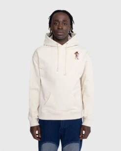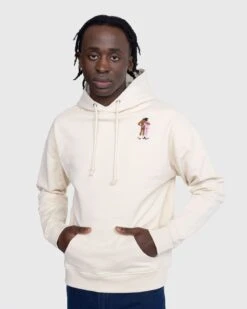100% organic cotton. Pullover design. Hood with adjustable drawstring. Ribbed cuffs and hem. Front pouch pocket. Embroidered detail at the left chest. Screenprinted artwork at the back.
