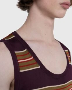 Bolster your adventurous summer wardrobe with the Milenco Tank Top by Dries van Noten. The cropped style highlights the Belgian designerβs artful pattern expertise, as it is decorated with a multicolored stripe print in all-over fashion. An elevated take on the traditional tank top, the DvN garment is knit from soft viscose and features a classic scoop neck. Wear it on its own or layered all warm weather season long.