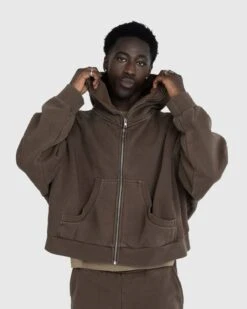 Entire Studios is known to elevate the simple, with contemporary updates to traditional silhouettes like the classic full zip fleece. Offered in neutral colors for effortless matching, the ES Full Zip is perfect for year-round wear, being crafted from a brushed-back cotton fleece that is treated with an enzyme wash for a more distinctive look. The style is cut in a boxy, oversized fit, detailed with a hood, two front pockets, and ribbed trims.