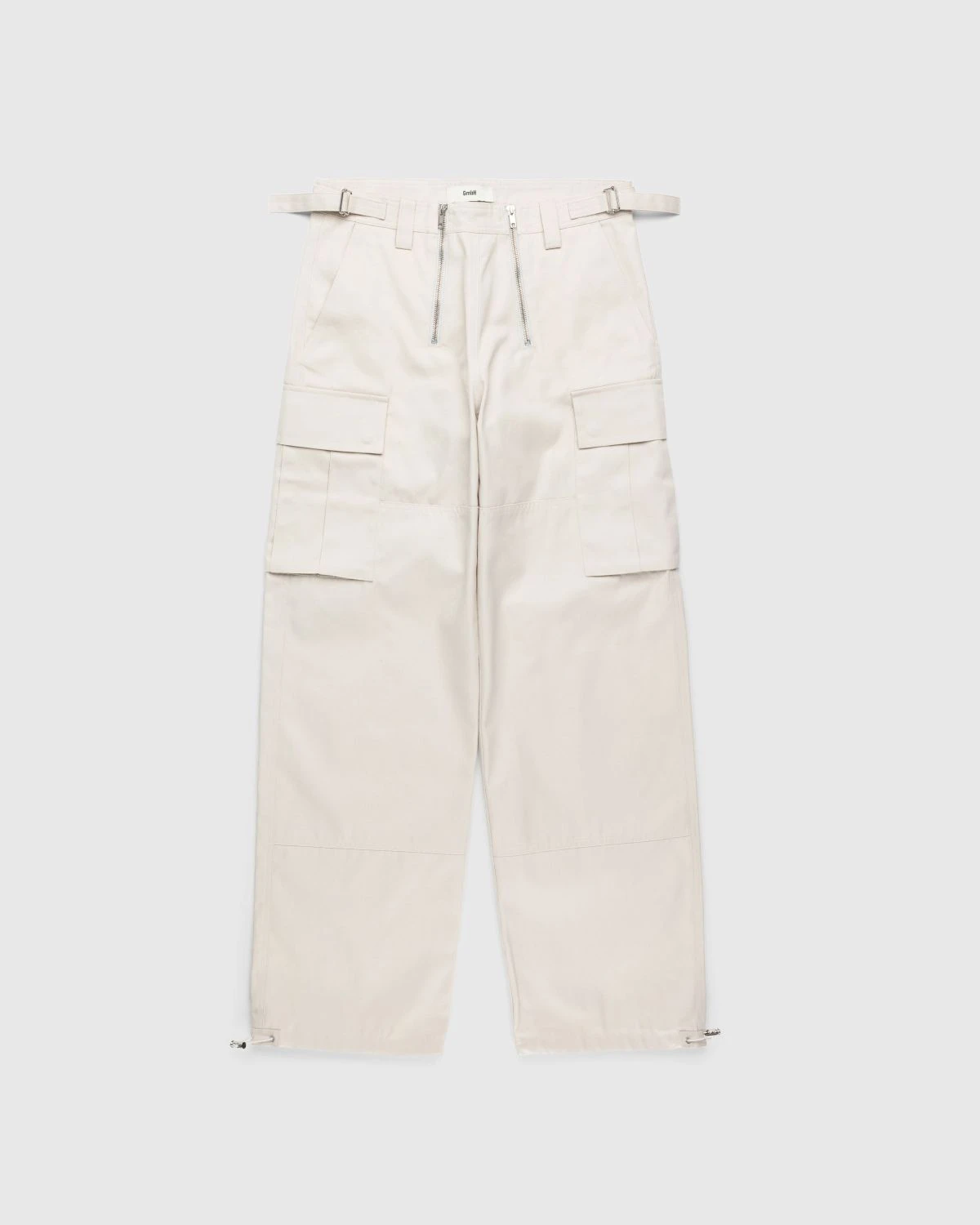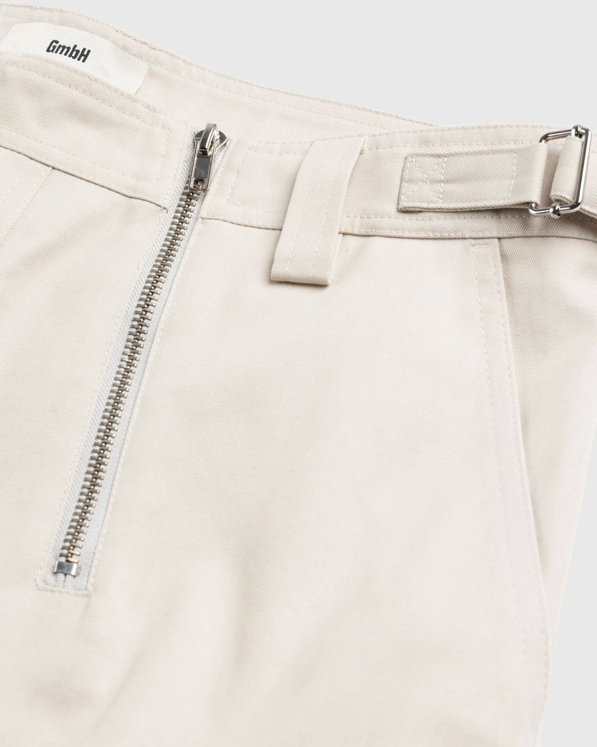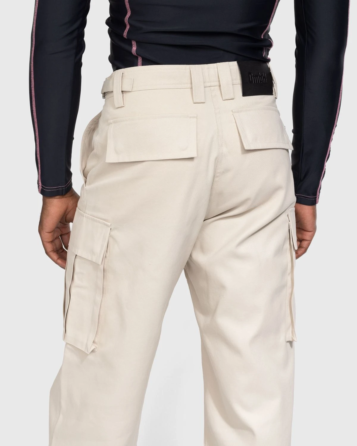 The Bekir Cargo Pants are defined by GmbH’s signature double zip front. This particular pair is produced in a cotton poly twill blend for a lightweight and breathable wear. Cargo pockets are implemented on each leg, joining side hand pockets and back flap pockets to provide you with more than enough space for carrying small essentials. Cut in a loose fit with a high rise and a straight leg, the style is made complete with cinched ankles that allow you to make minor adjustments to the look and fit.