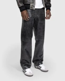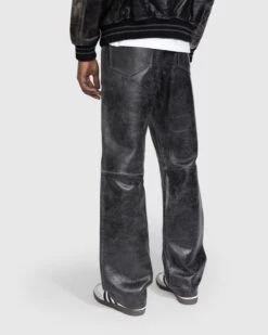 100% leather. Hand distressed. Five-pocket construction. Button fastening. Belt loops. Logo detail at the back right pocket.
