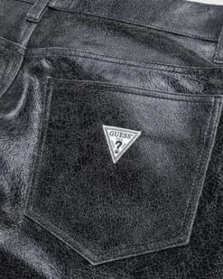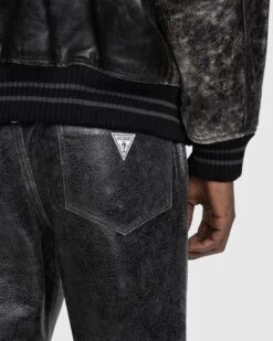 This beiged-out Guess pant is produced in 100% leather with hand distressing. It features a flare fit with a relaxed rise and traditional five-pocket construction. To brand the pair, a vintage Guess logo is applied to the back right pocket.