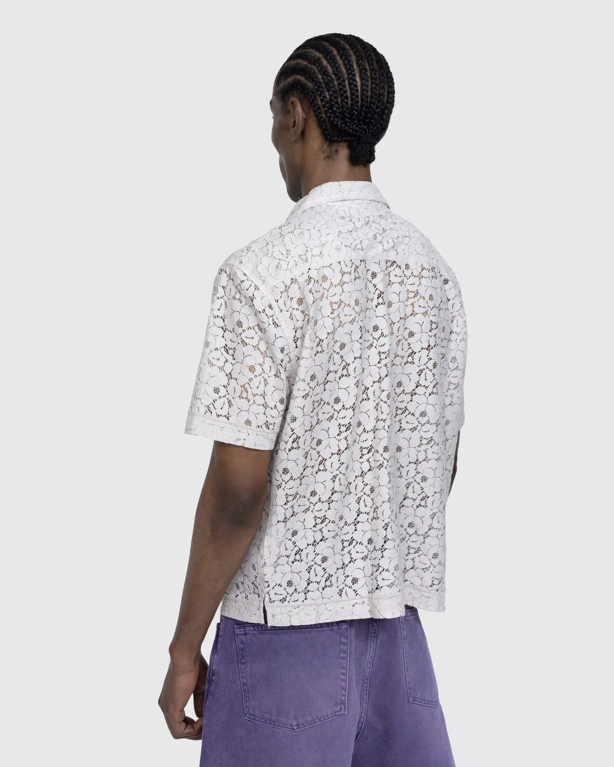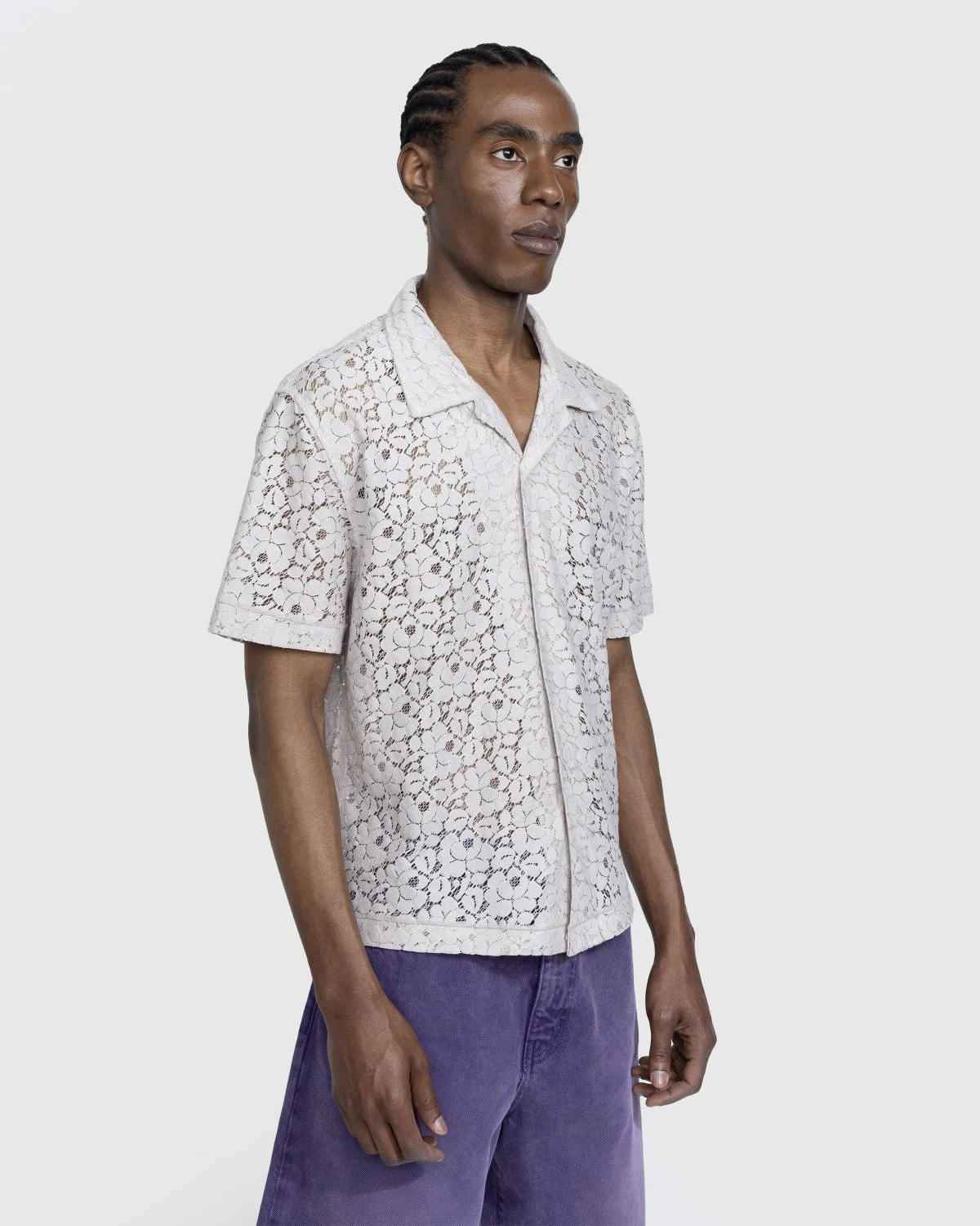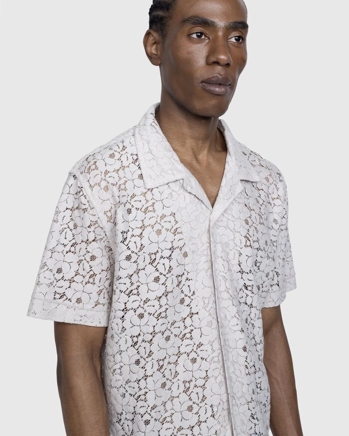 65% cotton. 35% polyester. Lace construction. Camp collar. Button closure. Straight hem. Left chest pocket.