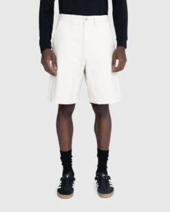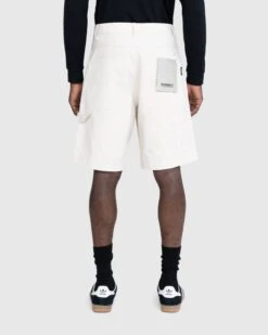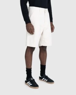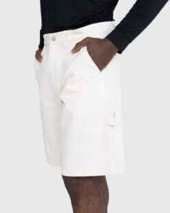 Inspired by the function-first design of workwear, these shorts arrive with a relaxed fit and a mid-length leg. The classic carpenter design comes with practical details such as a hammer loop at the left leg and extra pocket space — which can be found at the back right leg and inside the front right pocket. The shorts are crafted from hard-wearing cotton fabric and accented with white contrast stitching.