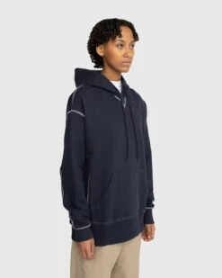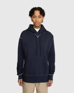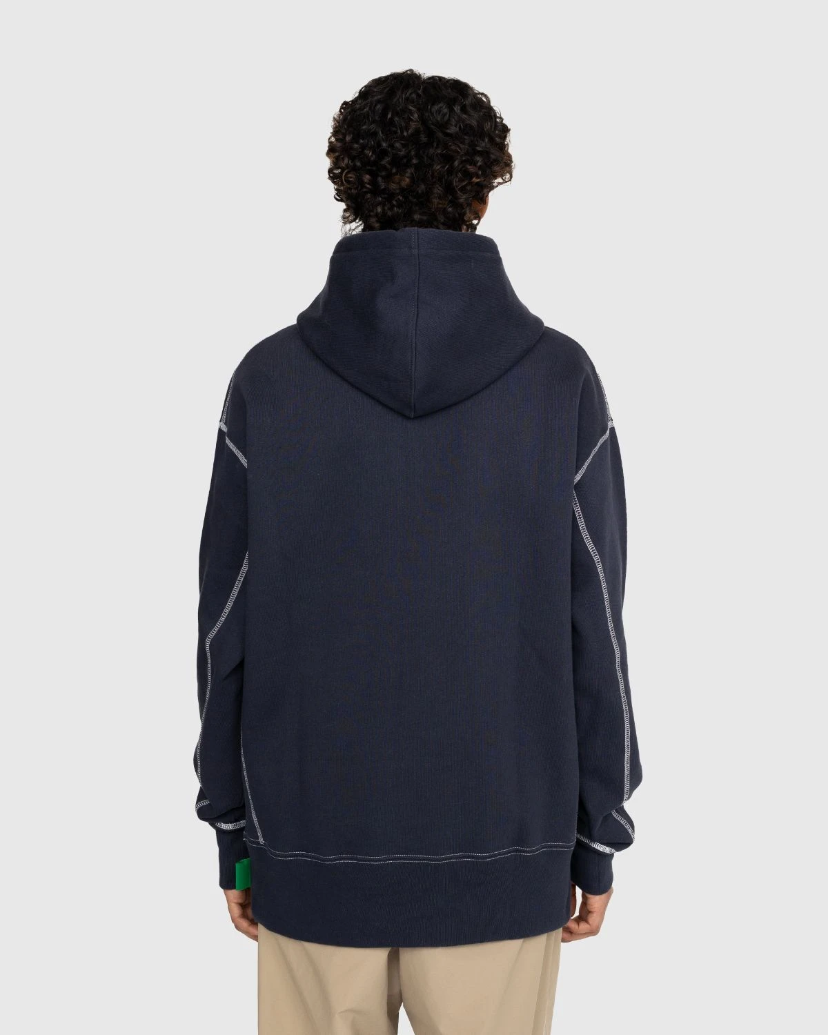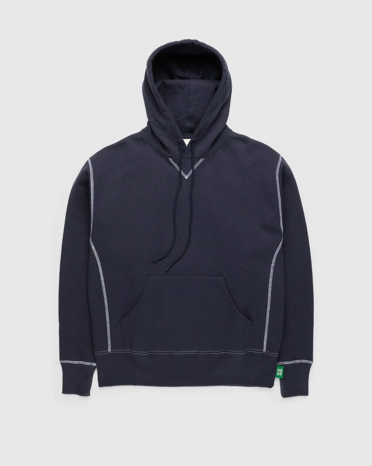 Produced in a hard-wearing fleece fabric, the Contrast Stitch Hoodie is our take on a wardrobe staple. Featuring traditional design elements, such as an adjustable drawstring hood, V-gusset at the neck, and front pouch pocket, it has been elevated through white contrast stitching and thick ribbed trims. The hooded style is cut in a slightly oversized, boxy fit. Branding is minimal by design, implemented as a small Highsnobiety flag label.