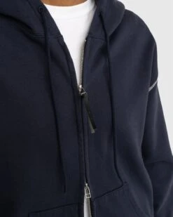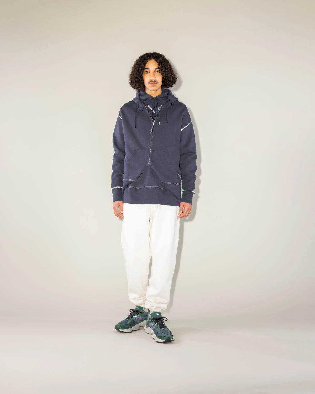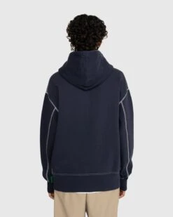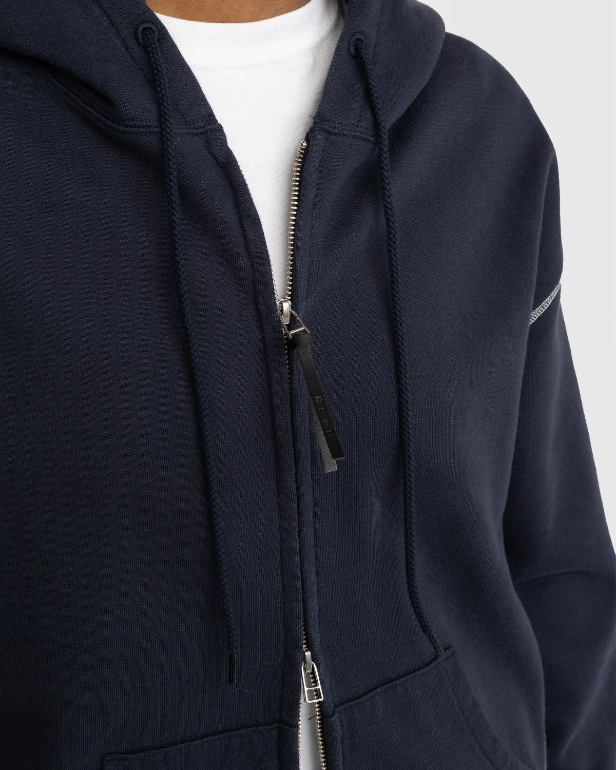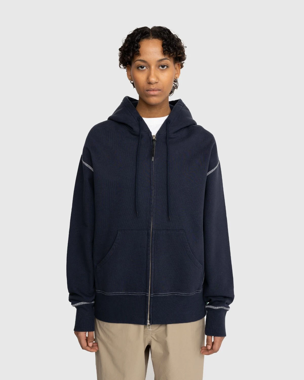 Produced in a hard-wearing fleece fabric, the Contrast Stitch Zip Hoodie is our take on a wardrobe staple. Featuring traditional design elements, such as an adjustable drawstring hood and front pouch pocket, it has been elevated through white contrast stitching, thick ribbed trims, and branded leather zip pulls. The zip-up style is cut in a slightly oversized, boxy fit. Branding is minimal by design, implemented as a small Highsnobiety flag label.