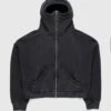 100% cotton. Full-length wire zip. Adjustable drawstring hood. Square hand pockets. Ribbed trims. Highsnobiety flag label.