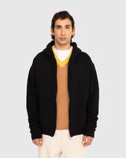 The Full Zip Hoodie is a classic fleece outerwear style available in a selection of neutral colors. Itβs outfitted with a full-length wire zip and also features an adjustable drawstring hood for protection from the elements. Additional details include square hand pockets and ribbed trims, as the garment is minimally branded with a small Highsnobiety flag label.