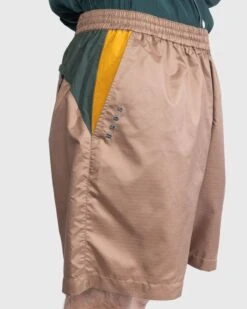 These shorts arrive in ripstop nylon with color-blocked detailing coming in the form of crinkle-textured nylon. Drawing from vintage technical outdoor-wear, the shorts include two side pockets with a zipped back pocket. Further details include a mesh lining, an elasticated waist, and subtle embroidered branding. There is also a matching jacket available from Highsnobiety.
