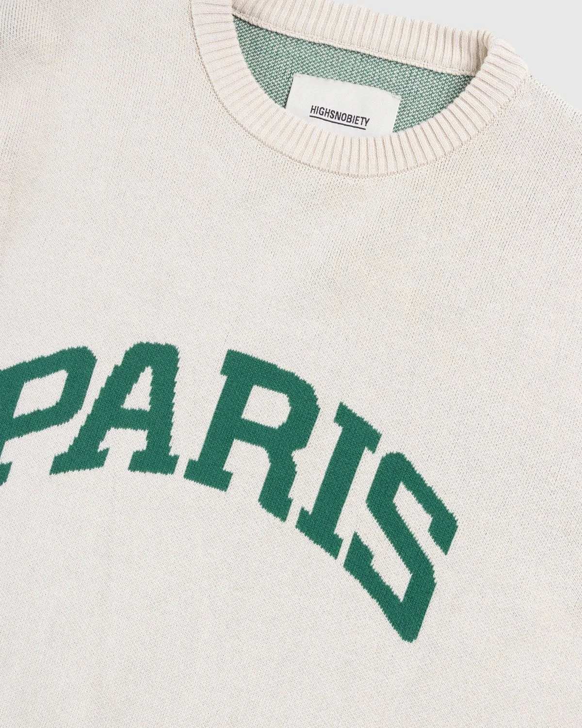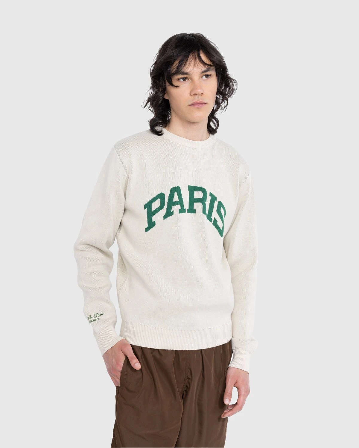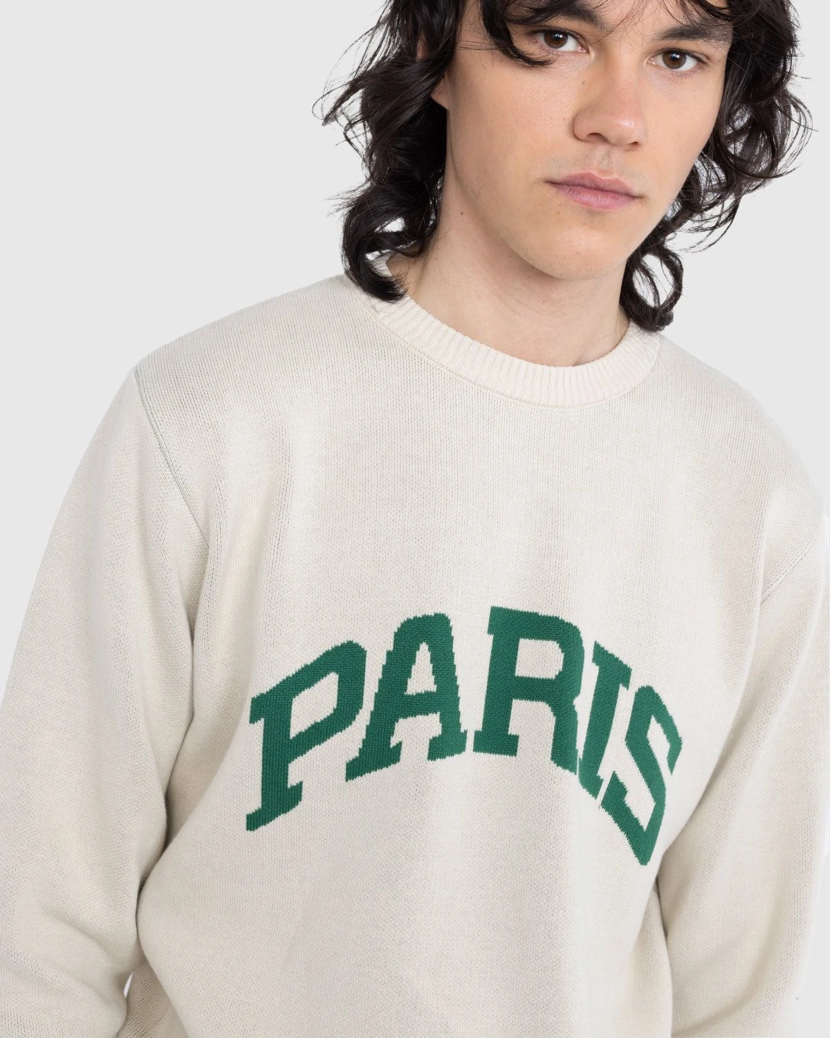 Inspired by classic collegiate styles, this sweater celebrates one of the main fashion capitals through its knitted chest graphic. Elsewhere, the right sleeve of this boxy-fitting sweater features embroidered branding. This is one of many pieces specifically designed to commemorate the fifth edition of Not In Paris, a multi-media event hosted by Highsnobiety featuring a selection of our favorite brands, artists, musicians, and other creators leading the charge in pushing culture forward. Coinciding with menβs fashion month, Not In Paris 5 hones in on the defining aspects of Paris, its people, and institutions, with collaborative capsules and inline releases spanning cut and sew, graphic styles, accessories, and collectibles.