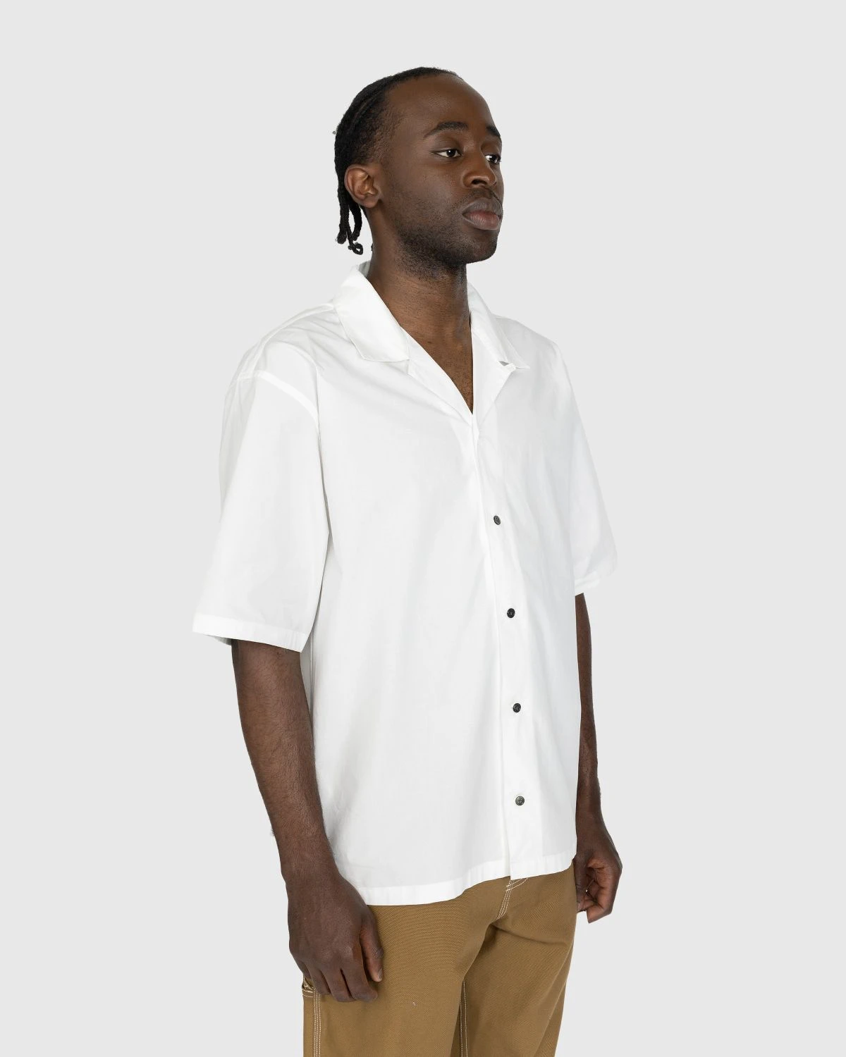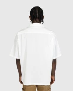 Crafted from lightweight cotton fabric, this short-sleeve shirt has been created with the warmest months in mind. The loose-fitting, boxy style arrives with a camp collar that can be folded up through an extra button under the collar. Further detailing comes in the form of a branded flag label on the left side, buttons with a subtle multi-colored finish, and a straight hem with a slit on either side.
