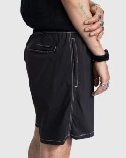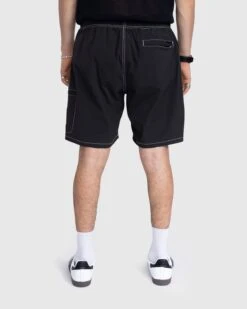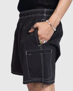 This casual, mid-length shorts style is crafted from a light, Japanese nylon fabric which is accented by white contrast stitching. On the left leg, there is a zip-up cargo pocket while the right leg features a zip-up back pocket with Highsnobiety flag label branding, both of which provide additional carrying space. An elastic waist with an internal drawstring enhances overall comfort and lets you dial in the proper fit.