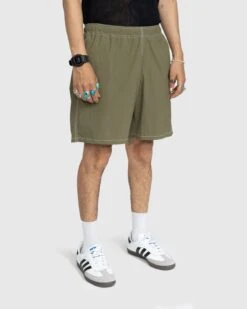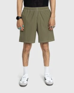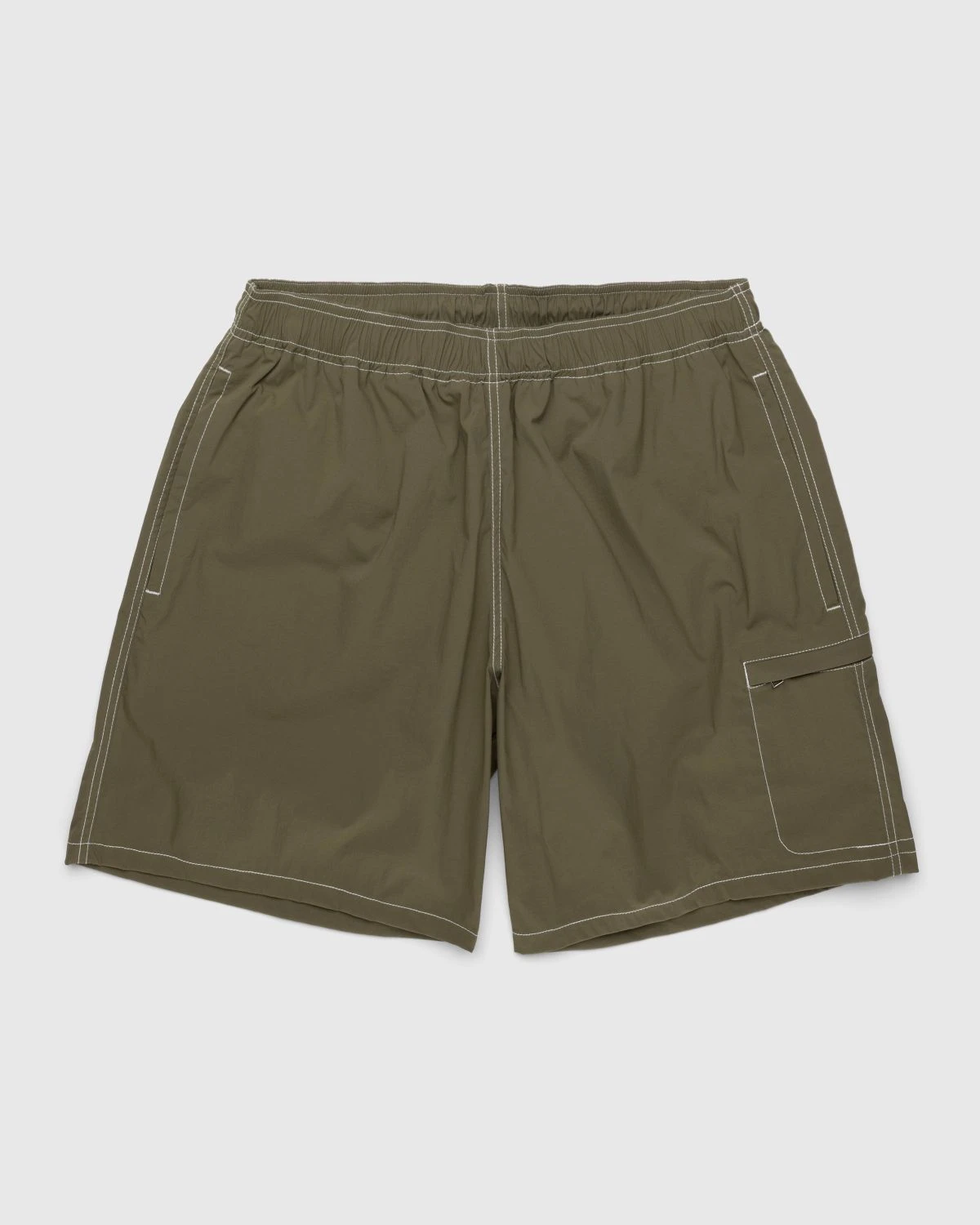 This casual, mid-length shorts style is crafted from a light, Japanese nylon fabric which is accented by white contrast stitching. On the left leg, there is a zip-up cargo pocket while the right leg features a zip-up back pocket with Highsnobiety flag label branding, both of which provide additional carrying space. An elastic waist with an internal drawstring enhances overall comfort and lets you dial in the proper fit.