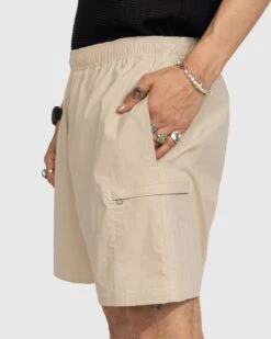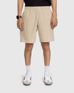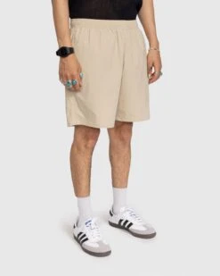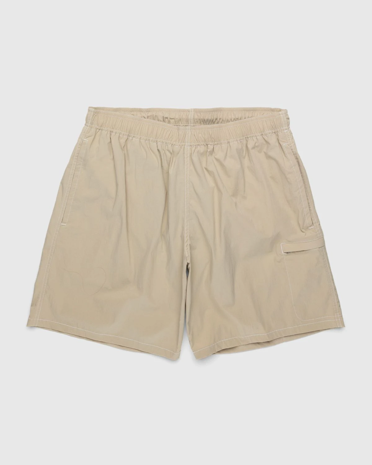 This casual, mid-length shorts style is crafted from a light, Japanese nylon fabric which is accented by white contrast stitching. On the left leg, there is a zip-up cargo pocket while the right leg features a zip-up back pocket with Highsnobiety flag label branding, both of which provide additional carrying space. An elastic waist with an internal drawstring enhances overall comfort and lets you dial in the proper fit.