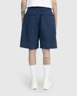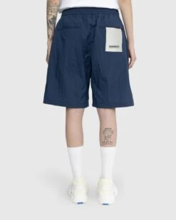 Crafted from lightweight Japanese nylon fabric, this casual legwear style is characterized by the textured finish of its fabric which is caused by a heat process. The mid-length style has side seam pockets along with two back pockets with a small flag label on the right back pocket. An elastic waist with an internal drawstring enhances overall comfort and lets you dial in the proper fit. This pair of shorts arrive along with a matching shirt jacket in the latest Highsnobiety collection.