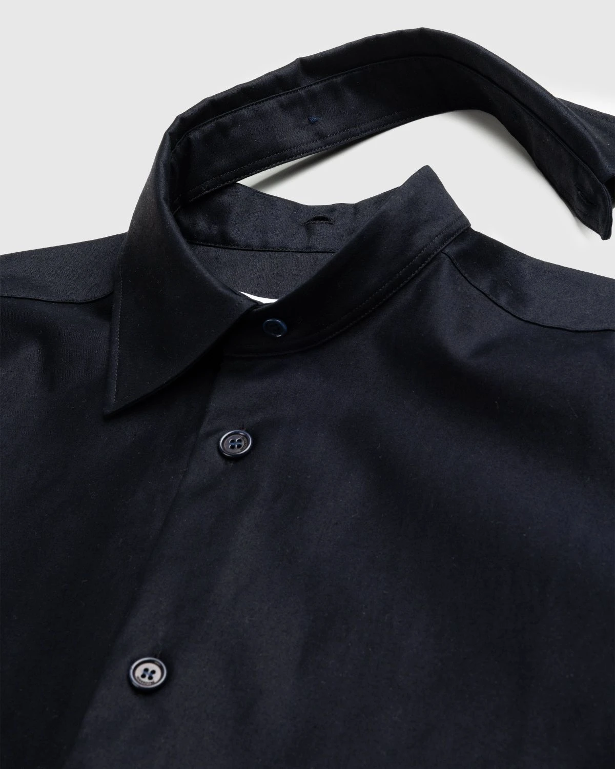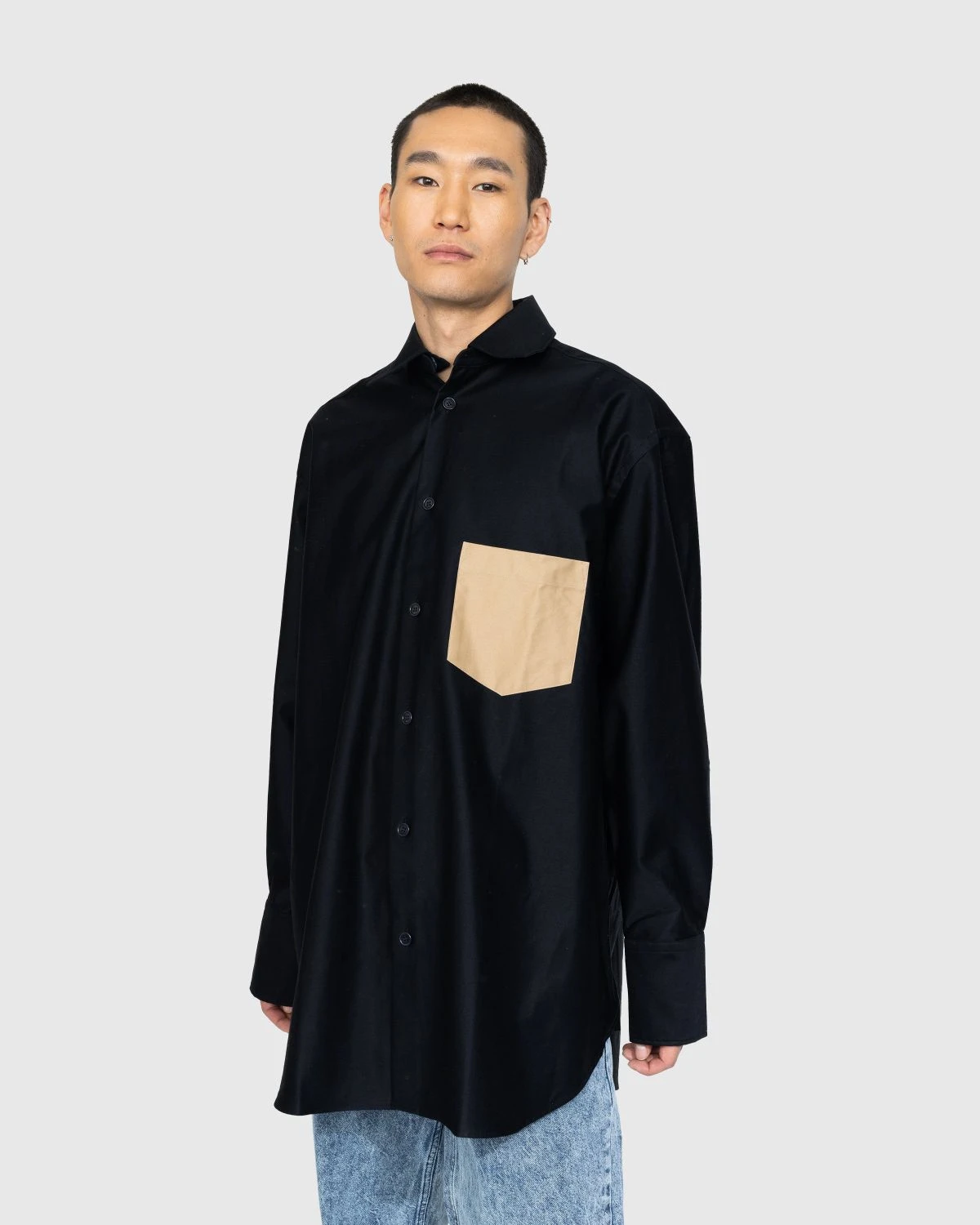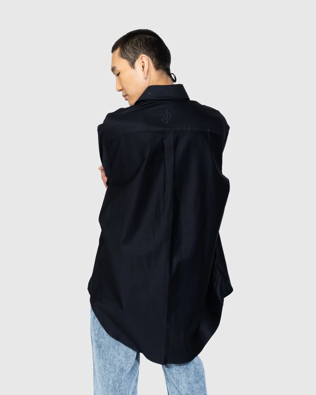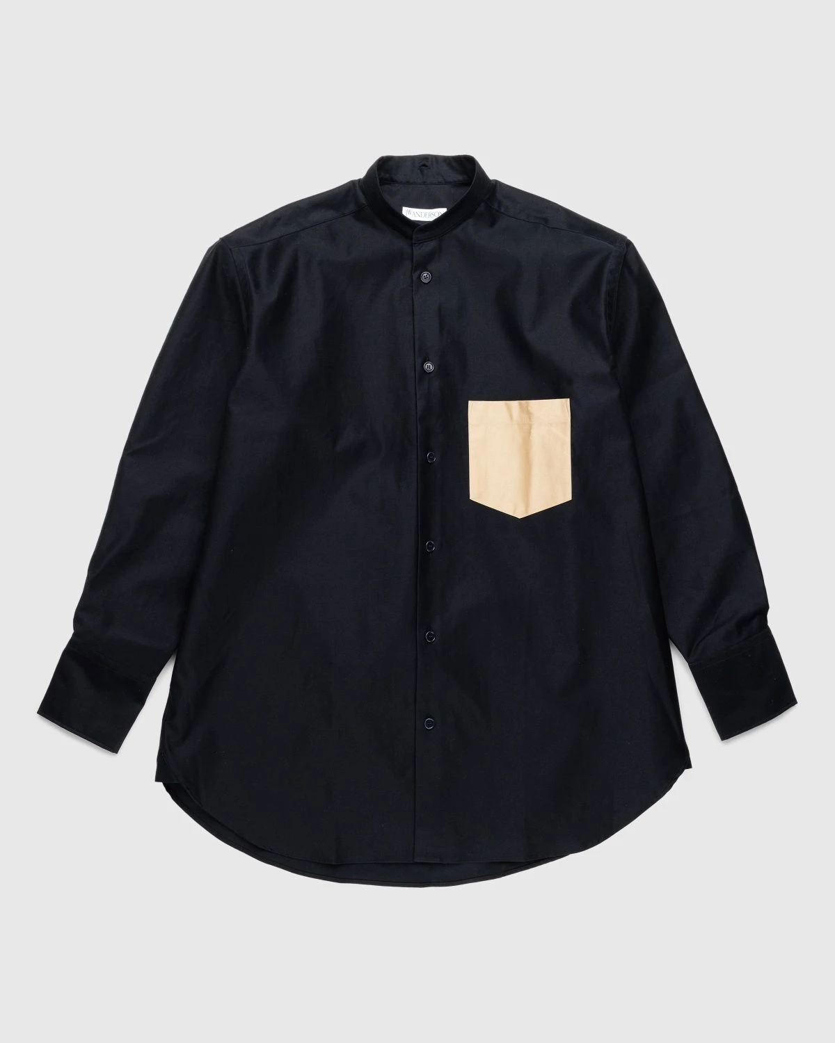 J.W. Andersonβs timeless collections often play with androgynous and oversized styles like the patch pocket shirt seen here in a deep navy blue hue. The shirt is crafted from a heavyweight chino fabric and features a detachable collar, a contrasting beige patch pocket, and dropped shoulders that accentuate the oversized fit.