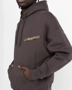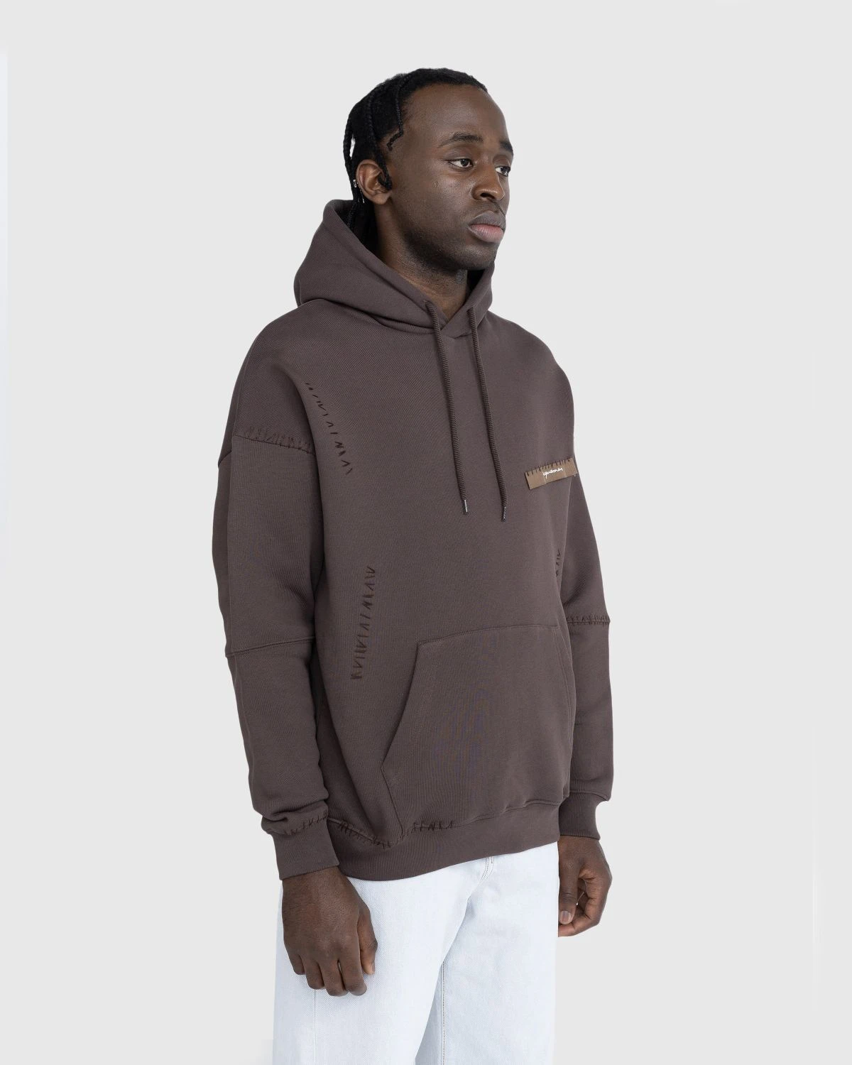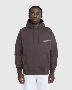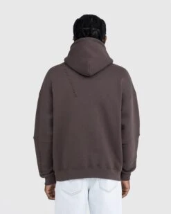 100% cotton fleece. Asymmetric large stitched details. Hood. Long sleeves with horizontal seams. Ribbed cuffs and hem. Front pouch pocket. Grosgrain with embroidered logo at the left chest.