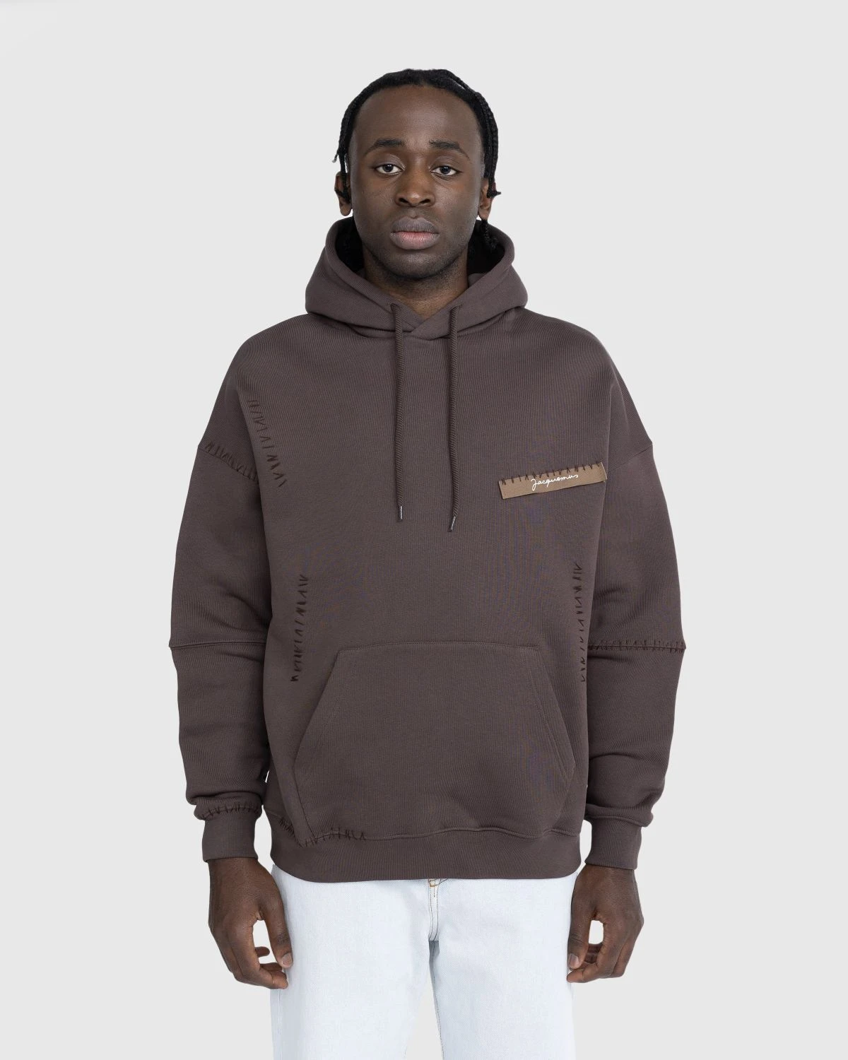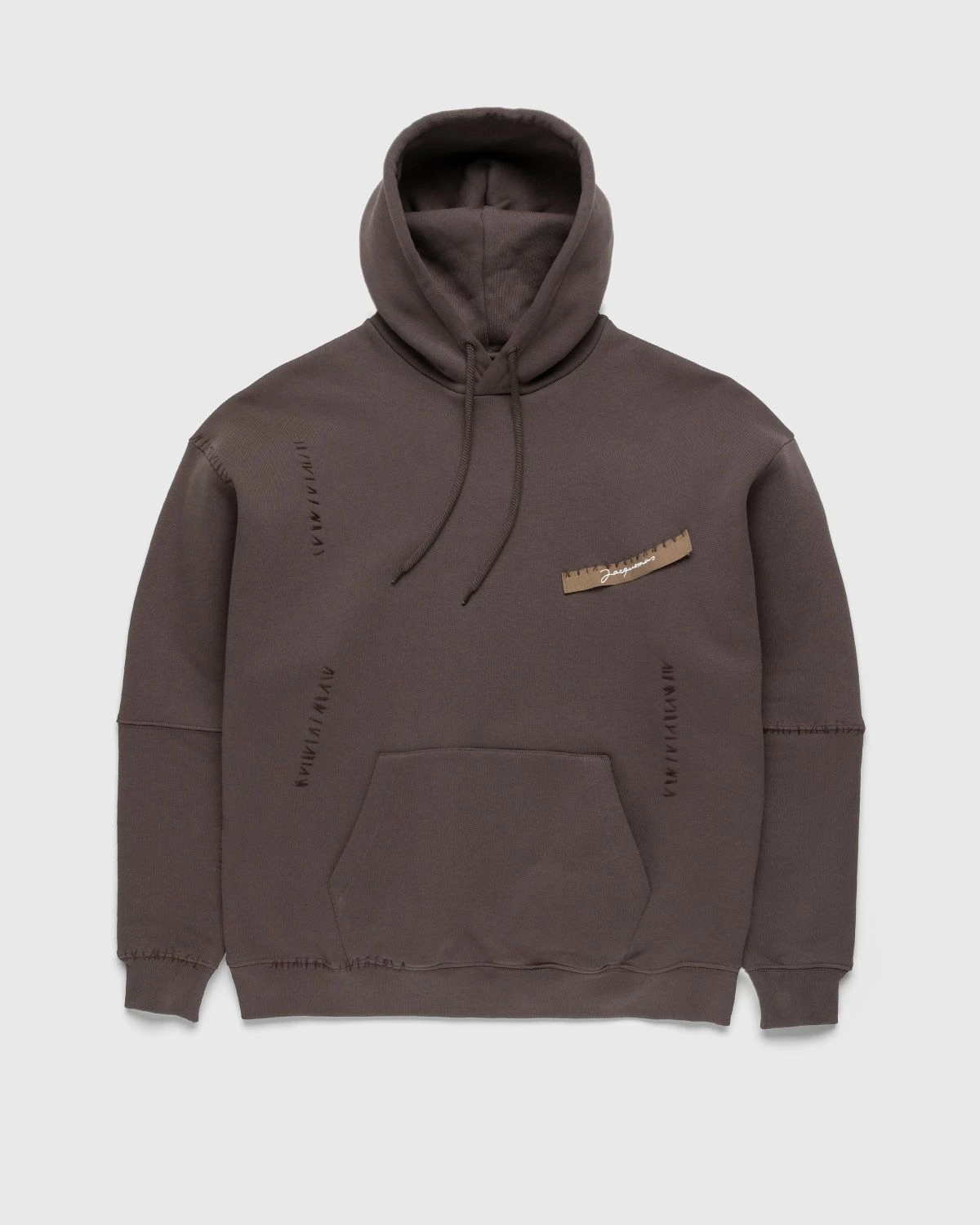 Le Sweatshirt Gasta is a cozy Jacquemus style produced in soft cotton fleece. A contemporary update to the classic pullover hoodie, the garment features asymmetric large stitched details and horizontal seams at the sleeves. The style is cut in an oversized fit for an extra comfy wear and finished with a grosgrain with embroidered branding at the chest.