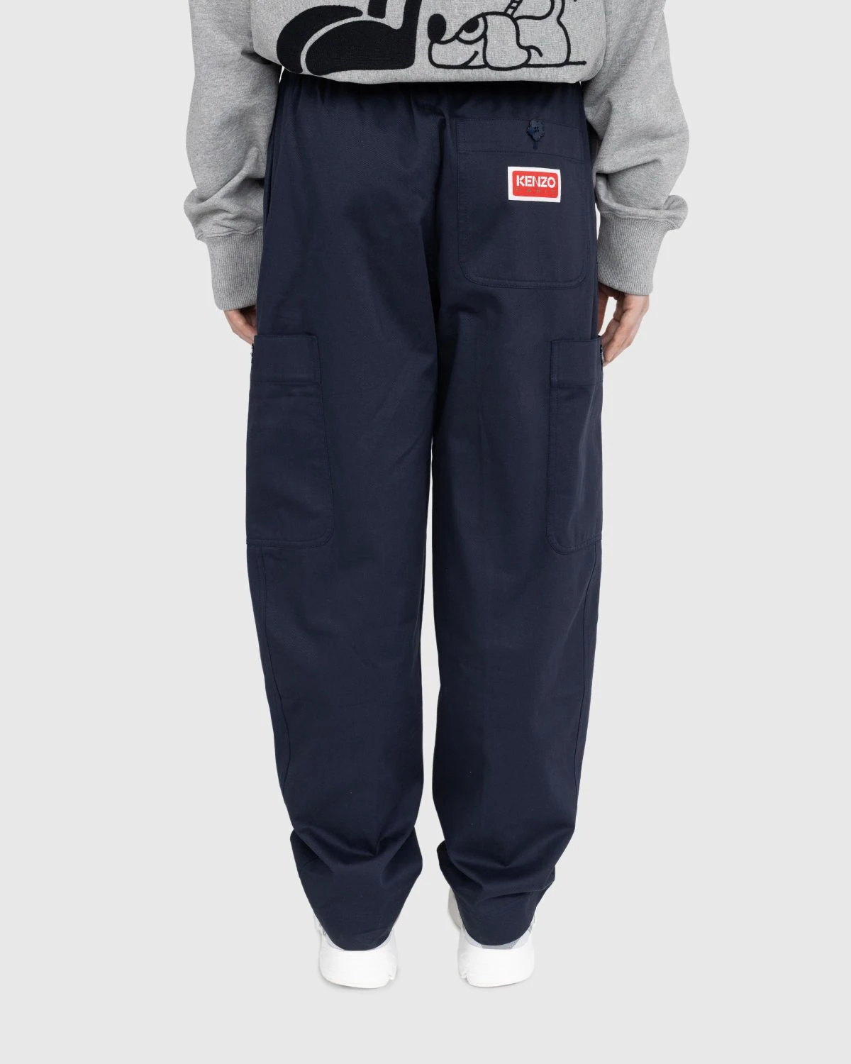 Arriving with a generous fit, inspired by baggy cargo pants that were popular in the ‘90s, the fit of these pants can be customized by the wearer through drawstrings on the hem of each leg. Cargo pockets on both legs offer extra carrying space, with the right pocket also including contrast KENZO branding.
