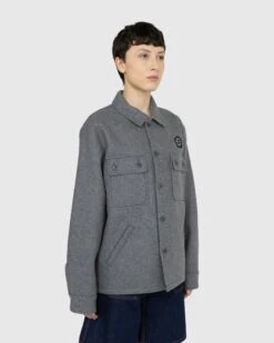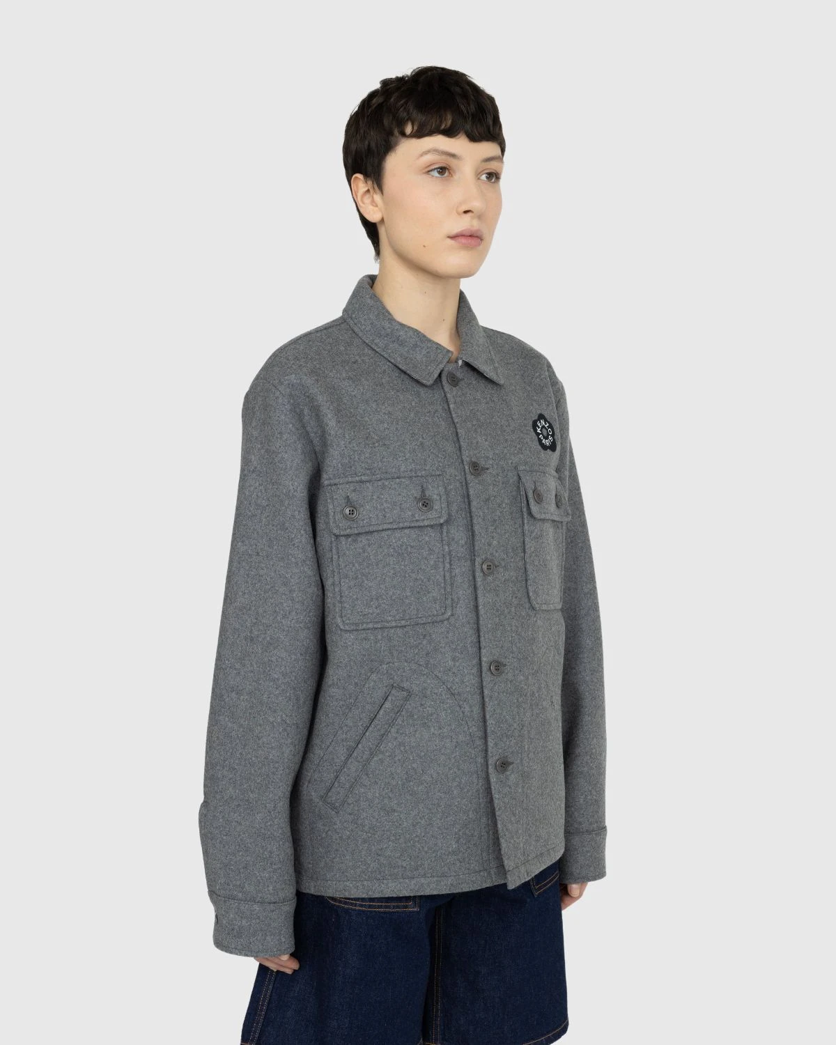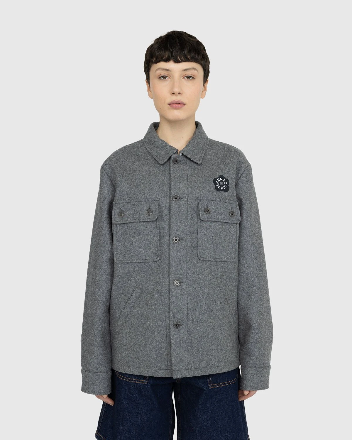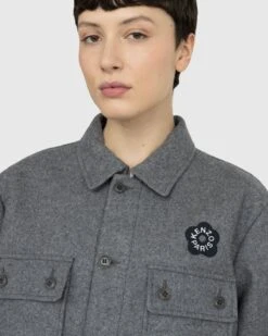 A central motif for artistic director Nigo during his current tenure at KENZO, the βBOKE FLOWERβ has been given an update and the minimal black iteration you see on the chest of this overshirt is version 2.0. The wool-blend shirt also has a button-down pocket on either side of the chest along with two slanted side pockets. On the back, contrasting KENZO branding can be found at the neck of the casual outerwear piece.