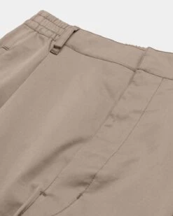 Main fabric is 100% cotton. Main lining is 100% cotton. Slightly shiny. Smooth drape. Elasticated waistband with an interior drawstring. Button fly. Corzo buttons. Single pleat. Side welt pockets. Back welt pocket.