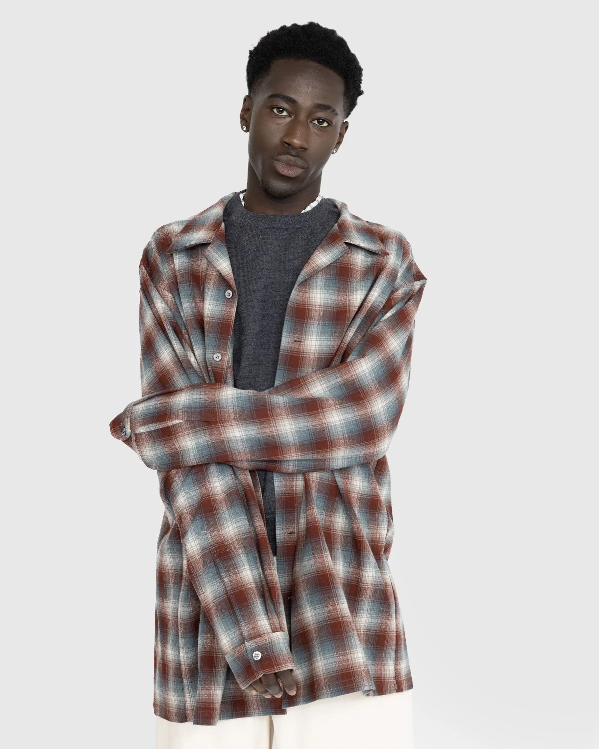The Check Wool Shirt is an oversized button-down by Maison Margiela. It is crafted from 100% wool and showcases an all-over check pattern. The oversized fit ensures a more distinctive look, as the style is detailed with a spread collar and mother of pearl buttons. The house’s iconic four stitches moniker is incorporated onto the back of the silhouette for a touch of authenticity.