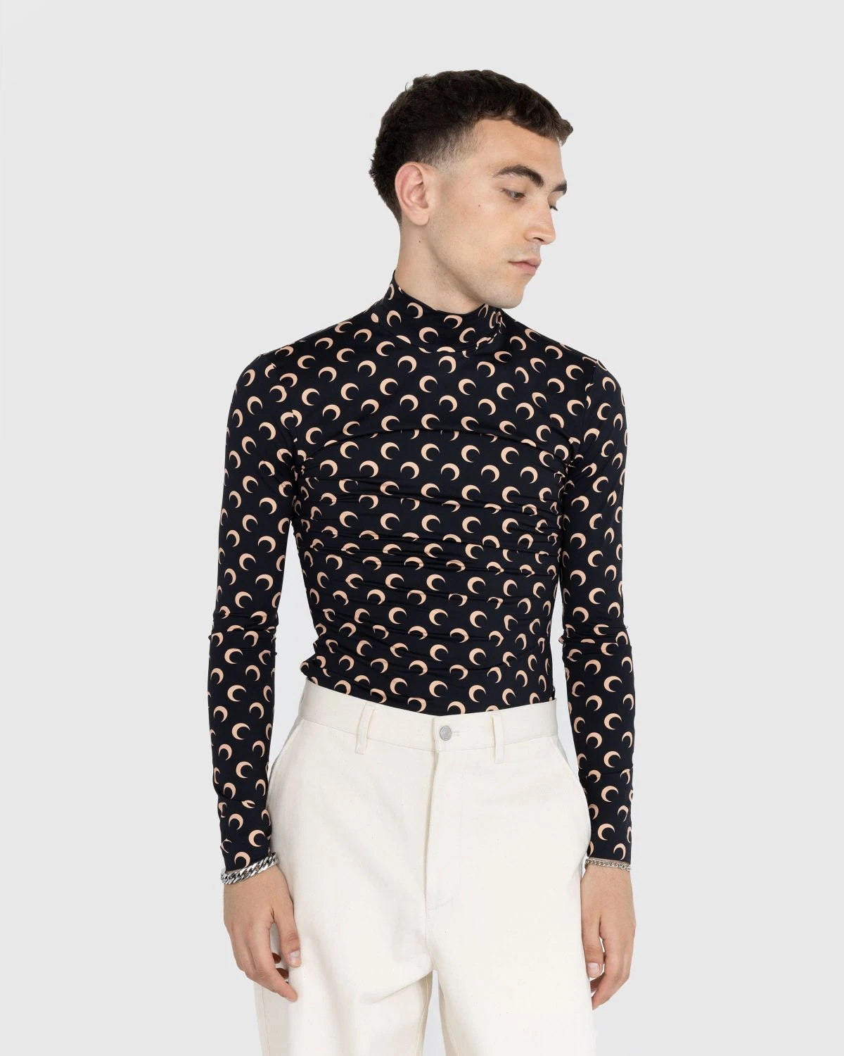 The Second Skin Moon Top is a standalone basic and essential layering piece this season and beyond. Produced in a recycled nylon and elastane blend, the shirt is adorned with Marine Serreβs signature moon print, one of fashionβs most coveted motifs. While it is designed to be worn with a complementary shirt or jacket over top, you can also wear the Second Skin Moon Top on its own for a more distinctive look.