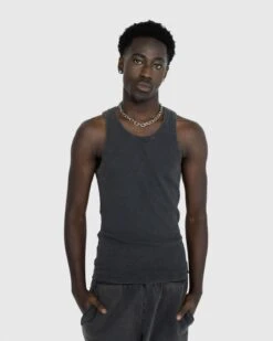 95% organic cotton. 5% elastane. Round neckline. Sleeveless. Logo detail at the center front and back neck.