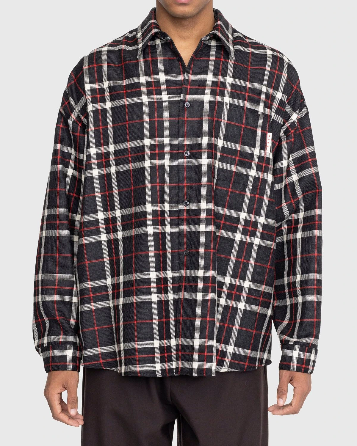 100% virgin wool. Woven. Check pattern. Pointed collar. Drop shoulders. Button closure. Button cuffs. Left chest pocket with Marni logo tag. The model is wearing a size M, and is 185cm / 6β tall with a 98cm / 38.5β chest. While this piece is from the menβs collection, we shoot on female, male, and non-binary models.