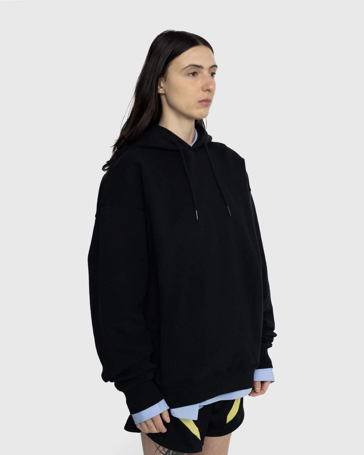 Per the name, this familiar style is a classic Martine Rose design, showcasing the brandβs scribble logo in contrasting print on the back. The staple hoodie is offered in a black and white colorway for easy matching, crafted from a soft cotton jersey fabric with traditional rib knit trims. A unisex style, the garment is cut for an oversized fit to ensure a more comfortable wear.