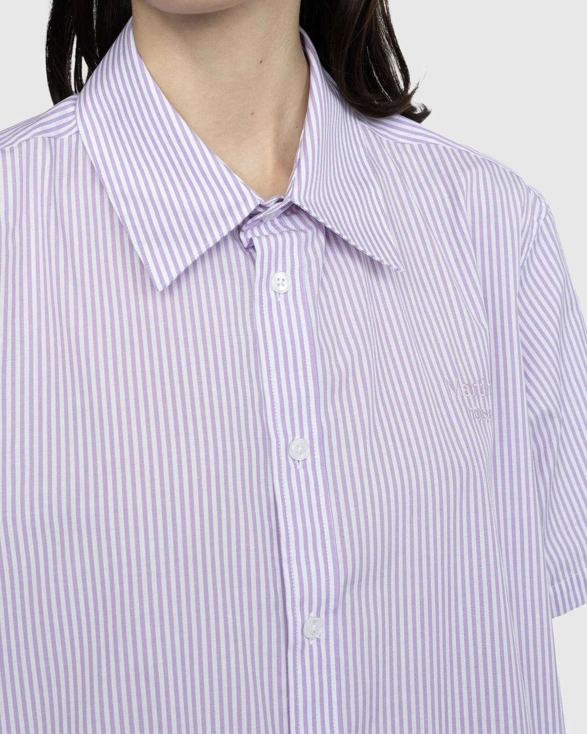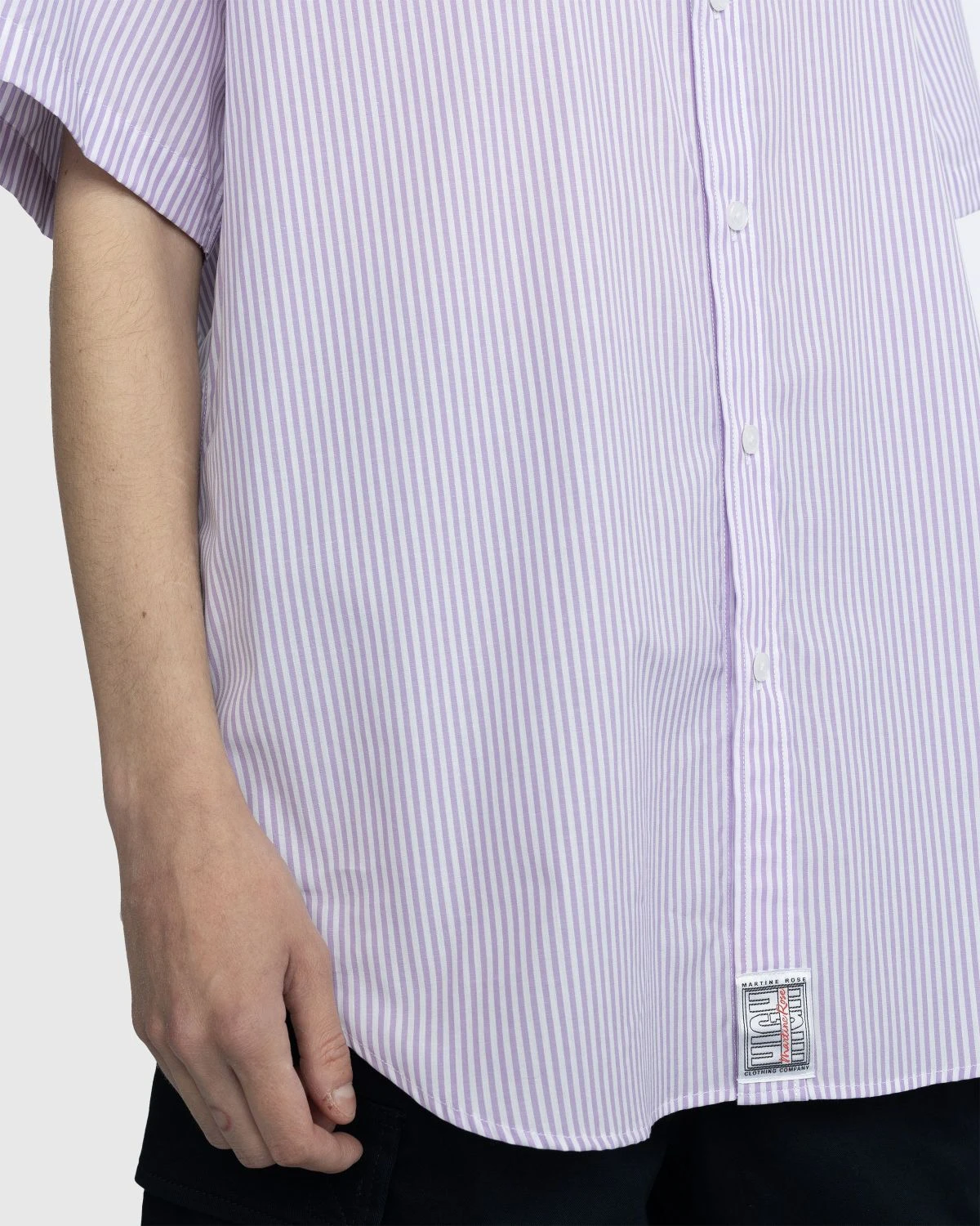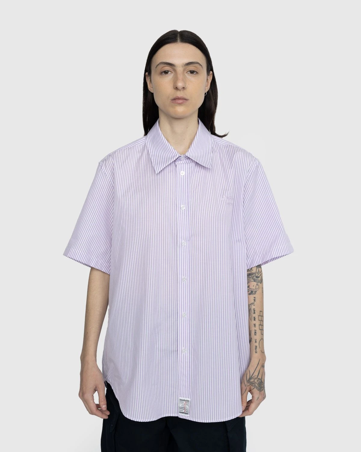 The Classic Shirt is a designer take on the traditional button-down. Showcasing a seasonal all-over stripe motif, the garment is made from 100% cotton, with standard front button closure and a fold down collar. Branding emerges at the chest in the form of an embroidered Martine Rose logo and at the hem by way of a branded tab.