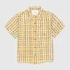 100% cotton. All-over stripe motif. Fold down collar. Button closure. Embroidered logo at the left chest. Branded tab at the hem.