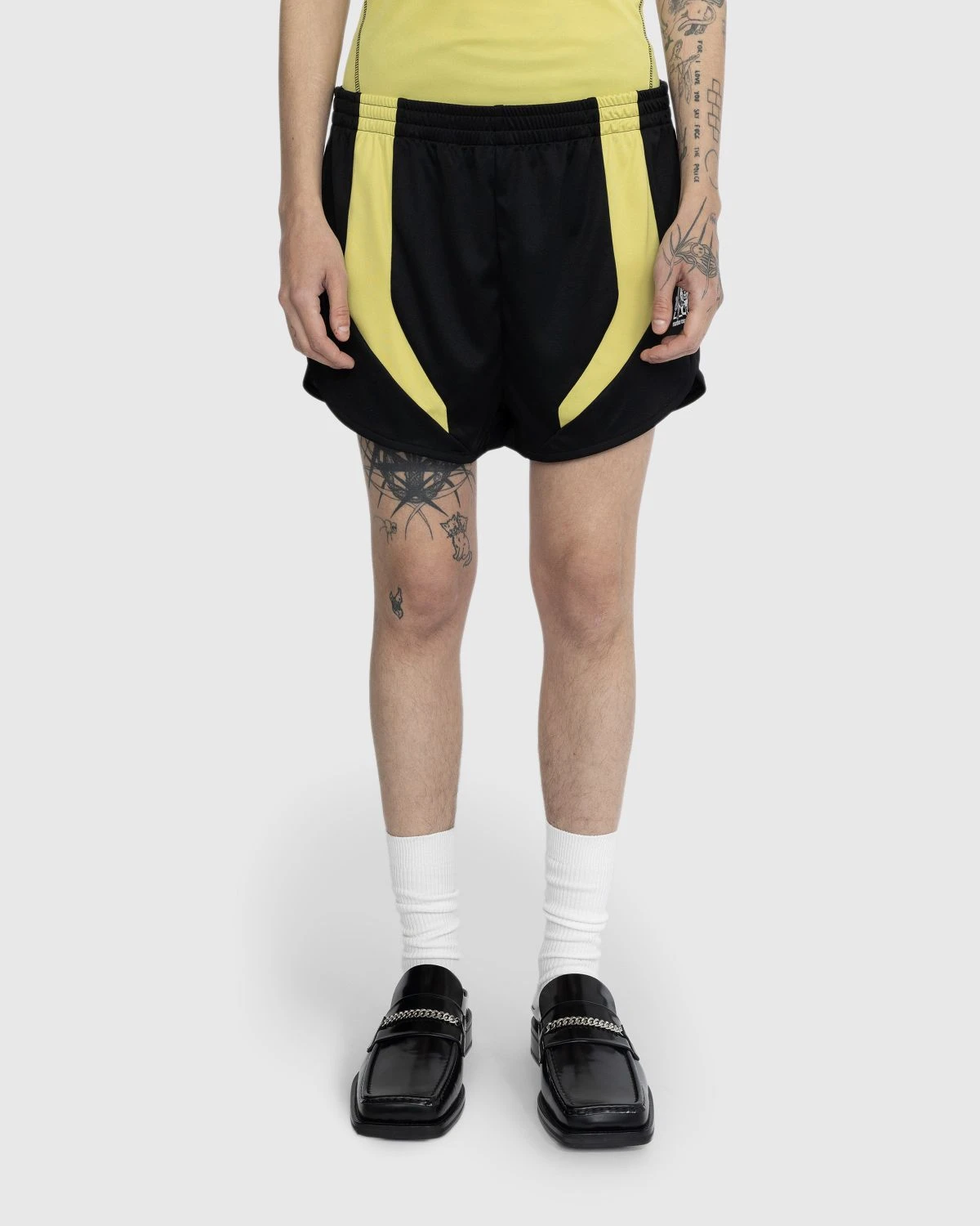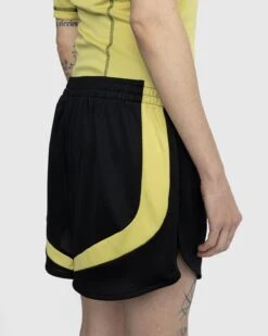 The Martine Rose Football Shorts bring a bit of sportswear flavor to your warm weather wardrobe. Cut from technical jersey and combined with Dri-Fit jersey fabrics, the polyester bottoms are designed for a loose or oversized fit. Contrasting yellow panels inject color into the piece, which is further embellished with seasonal Martine Rose sports logos. Created for everyone, the pair is made with an elasticated waistband for optimal comfort and an adjustable fit.